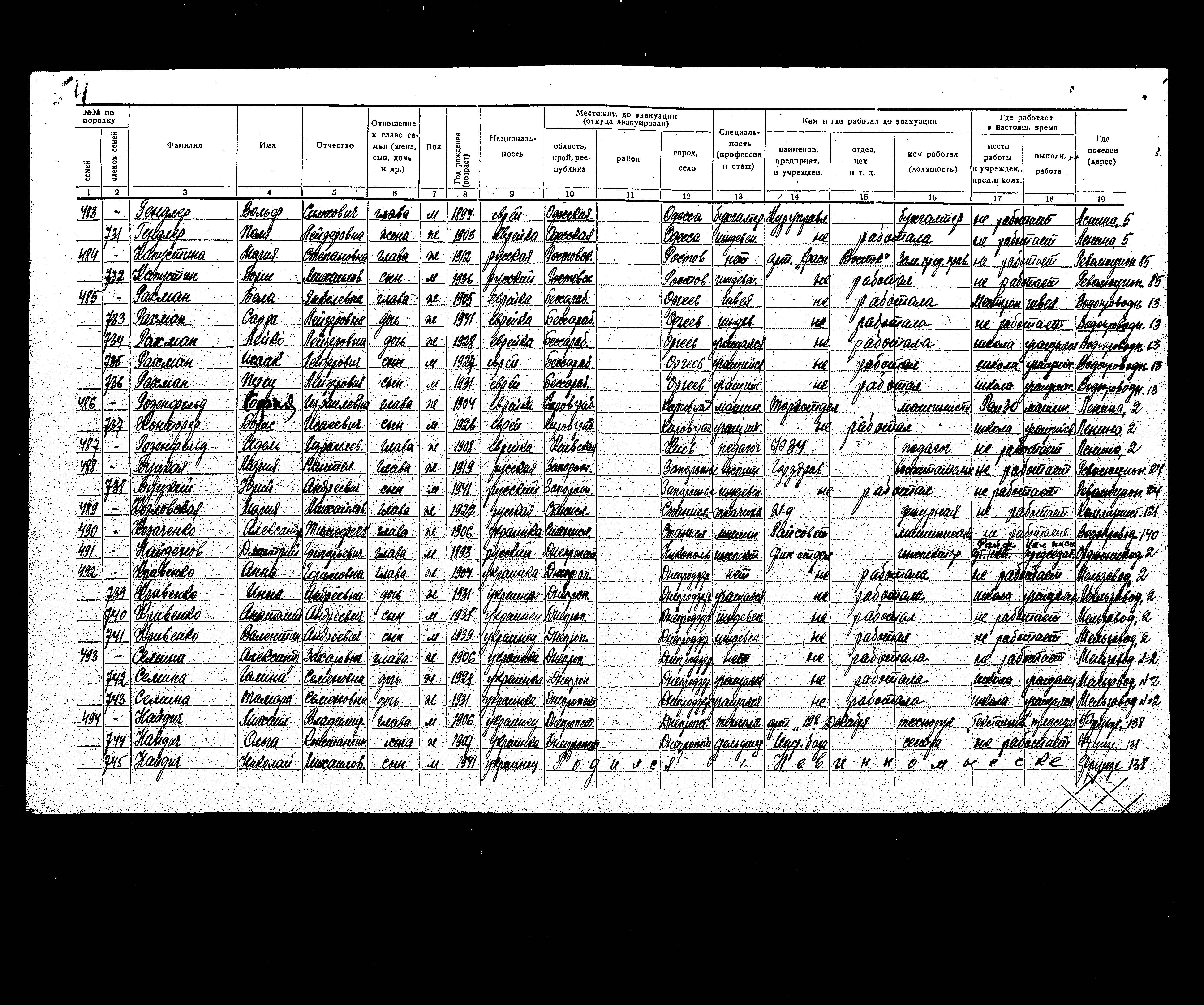 רשימת תושבים שפונו ל- Nevinnomyssk, שהוכנה בשנת 1942