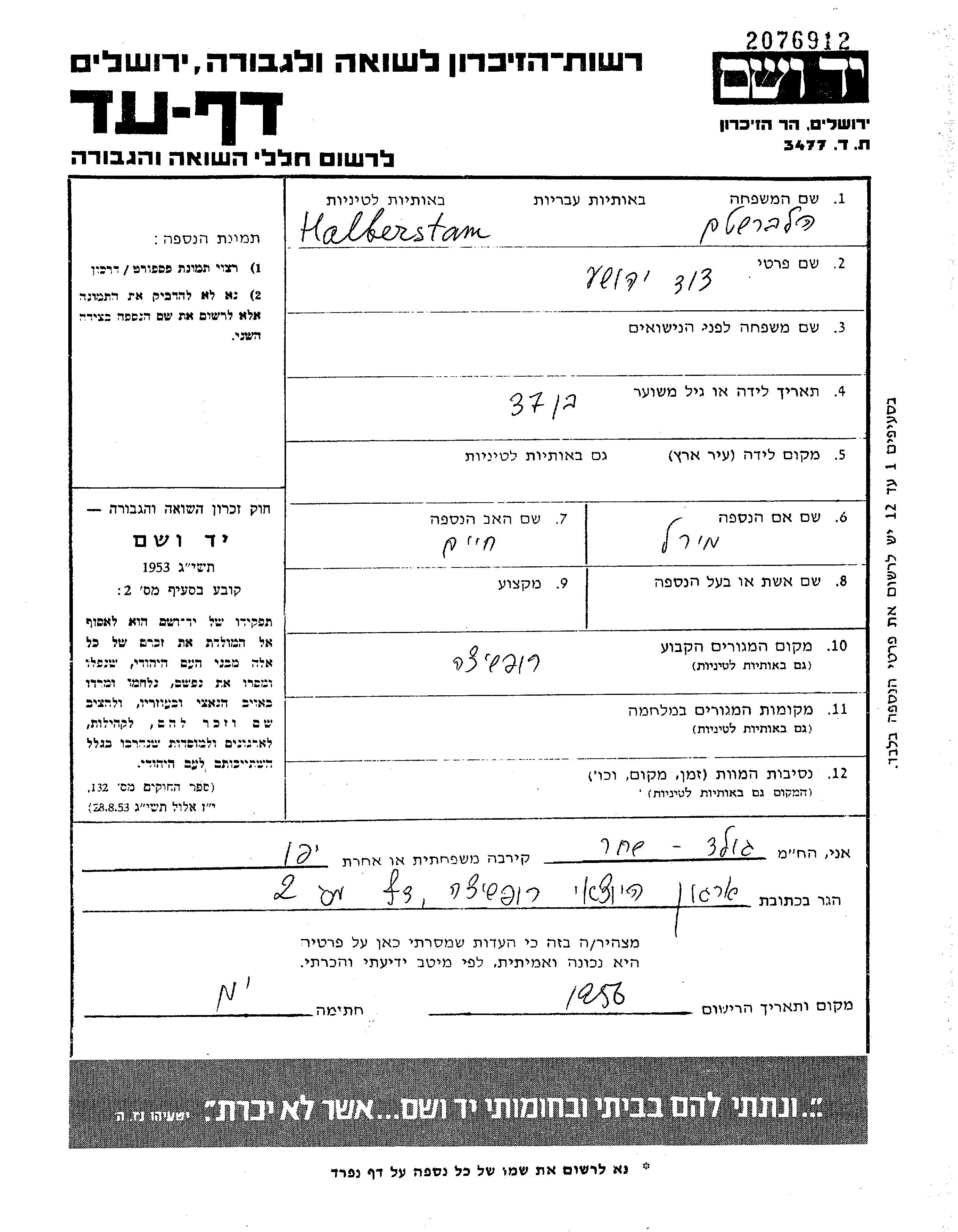יד ושם - המפעל להנצחת השמות בדפי עד