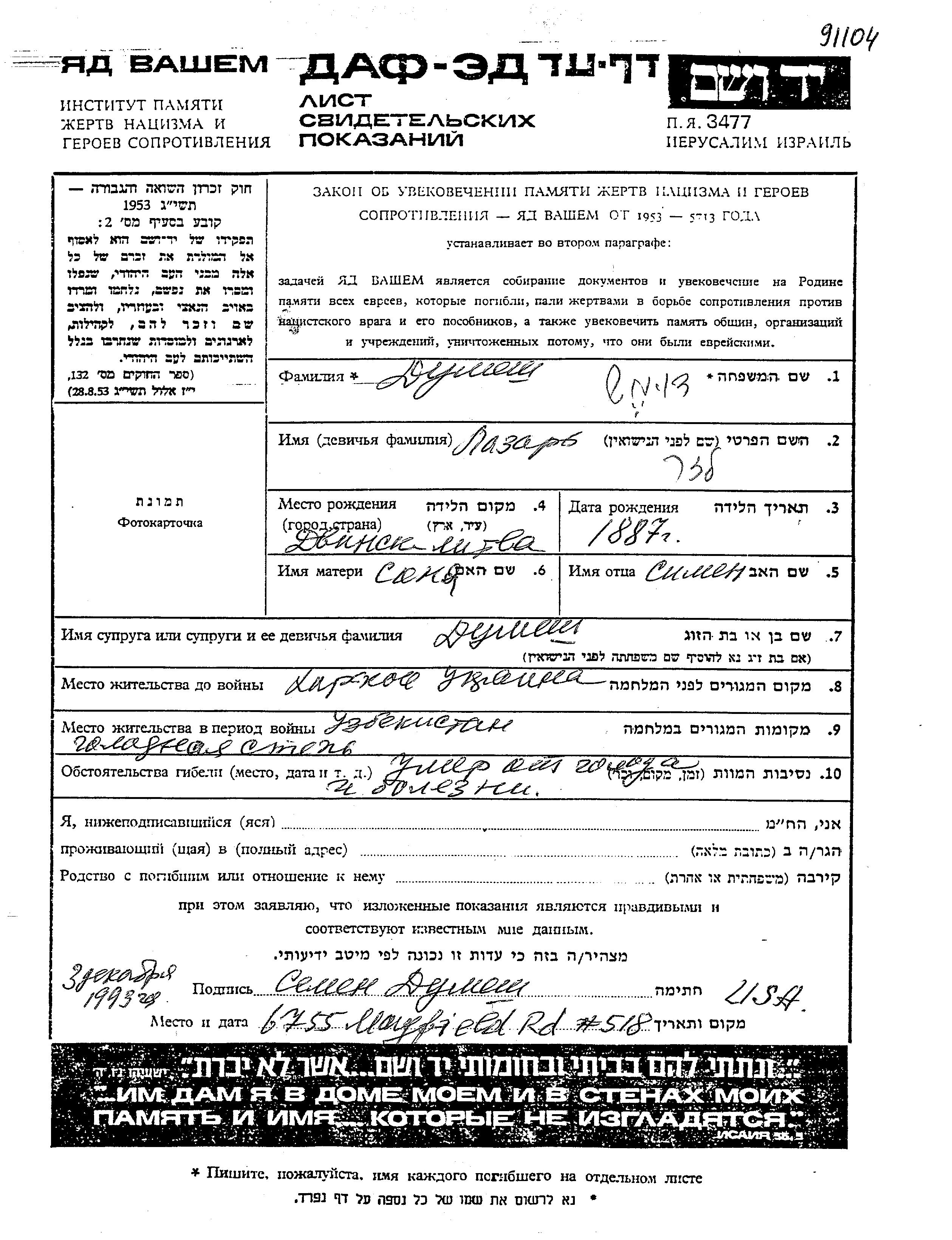 יד ושם - המפעל להנצחת השמות בדפי עד