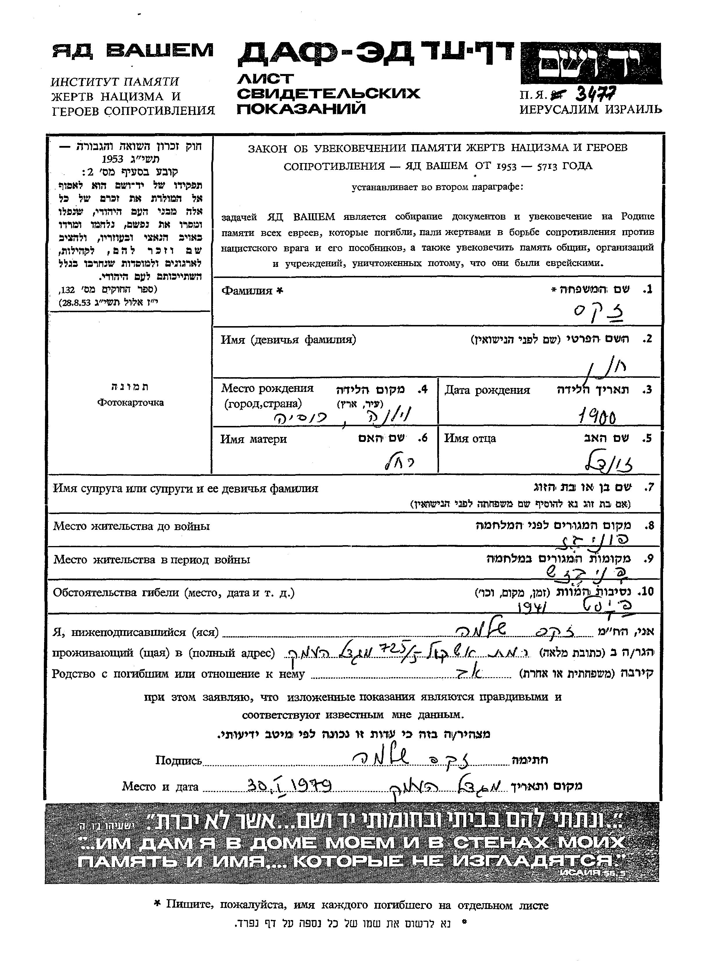 יד ושם - המפעל להנצחת השמות בדפי עד