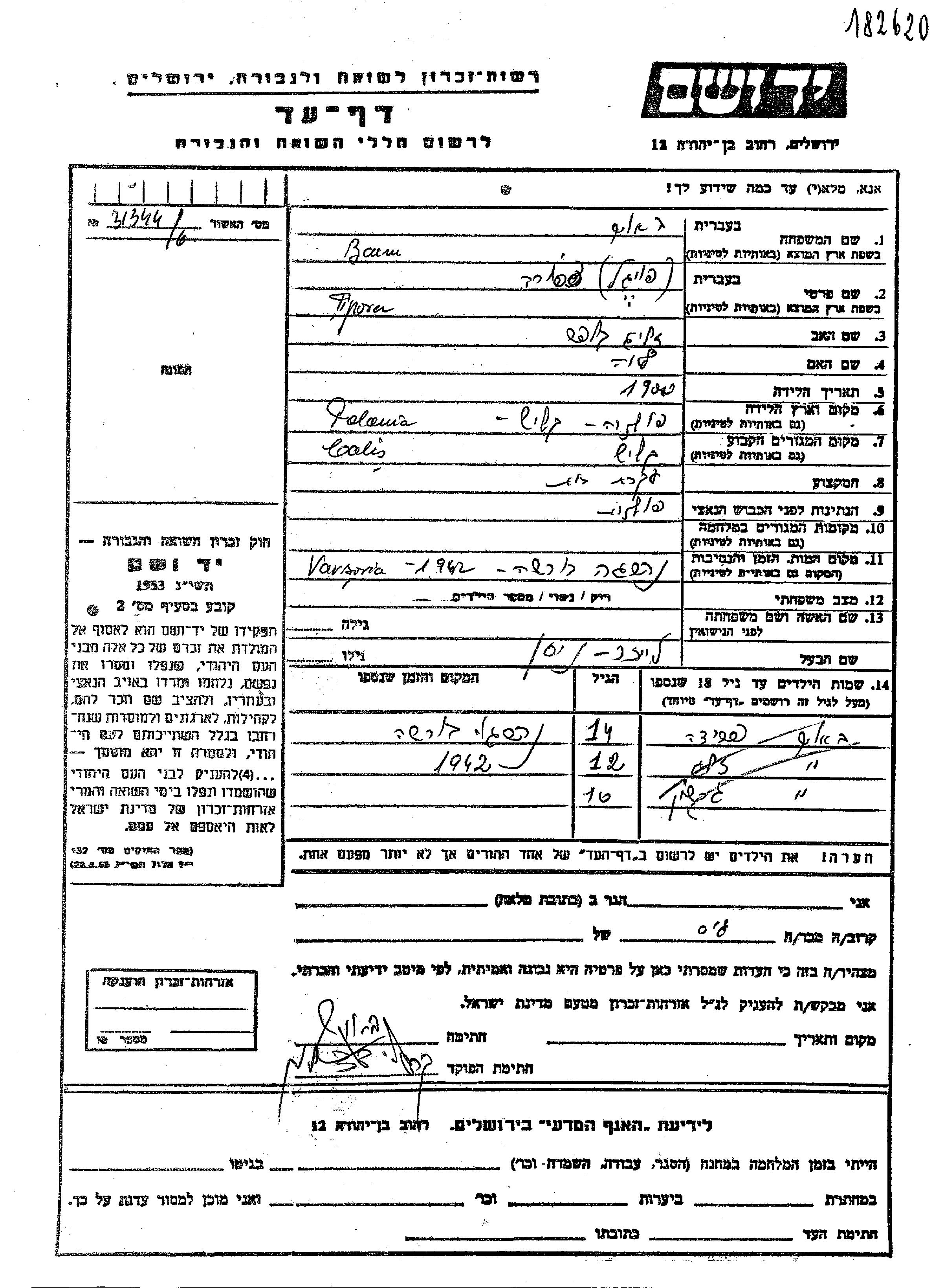 שאלון לרישום ניצולי שואה