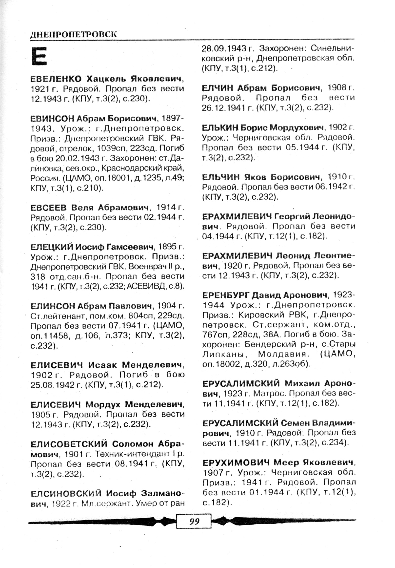 Yerenburg דוד 1923 Dnepropetrovsk, אוקראינה (ברה"מ) רשימת נרדפים