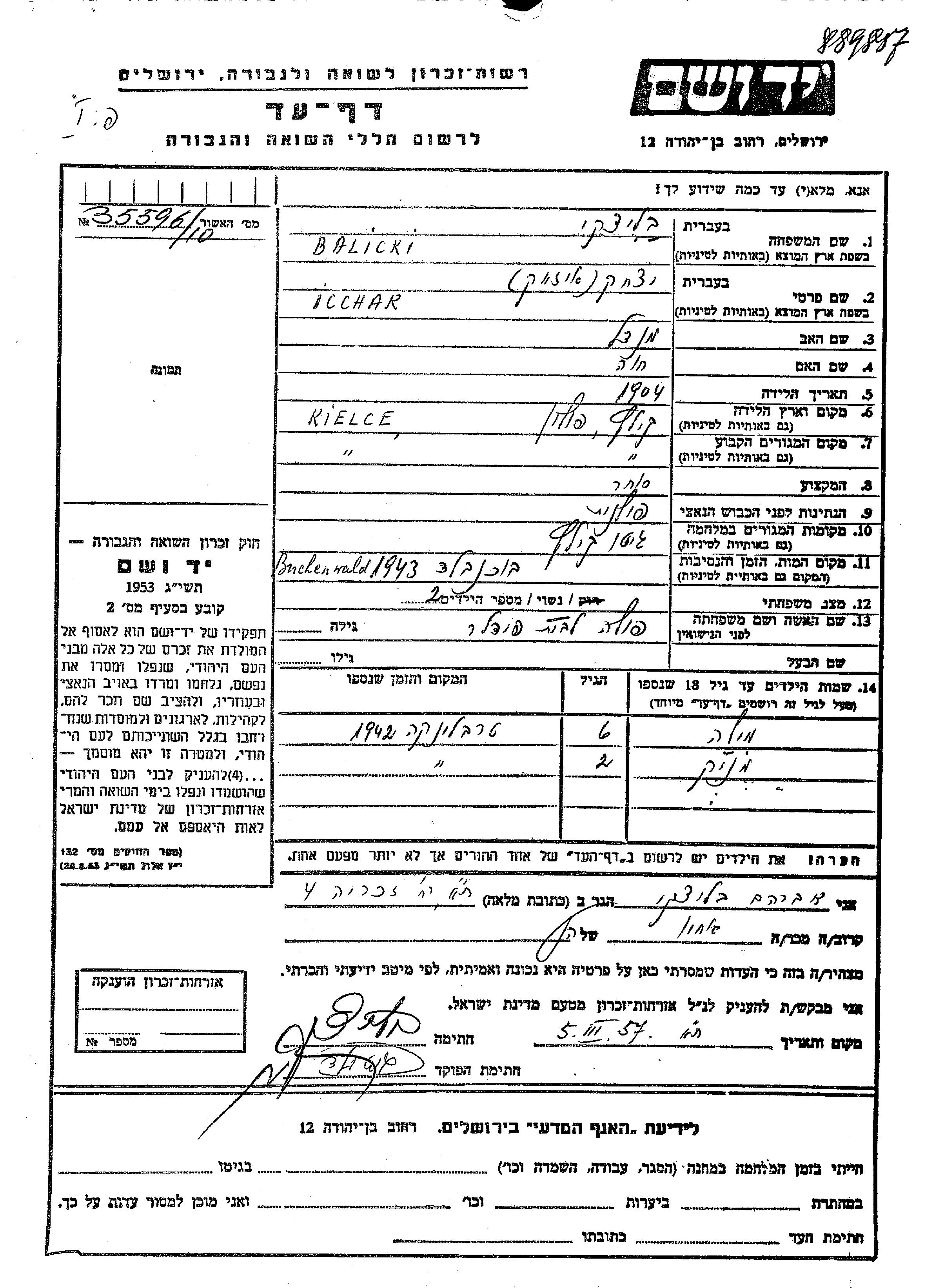 Balicki בליצקי Meni מנדל מני 1939 Kielce, פולין דף-עד