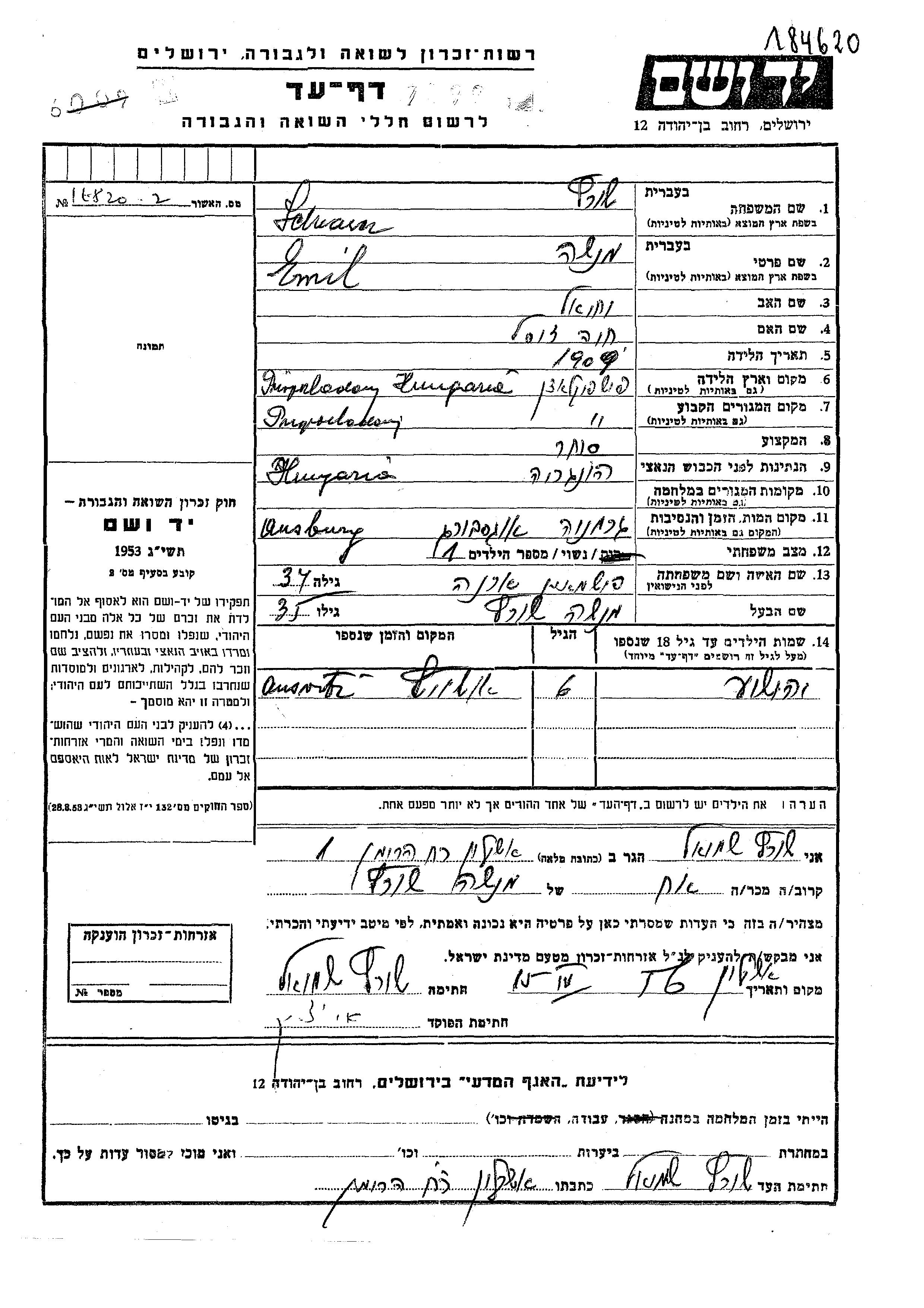 מאגר שמות קרבנות השואה
