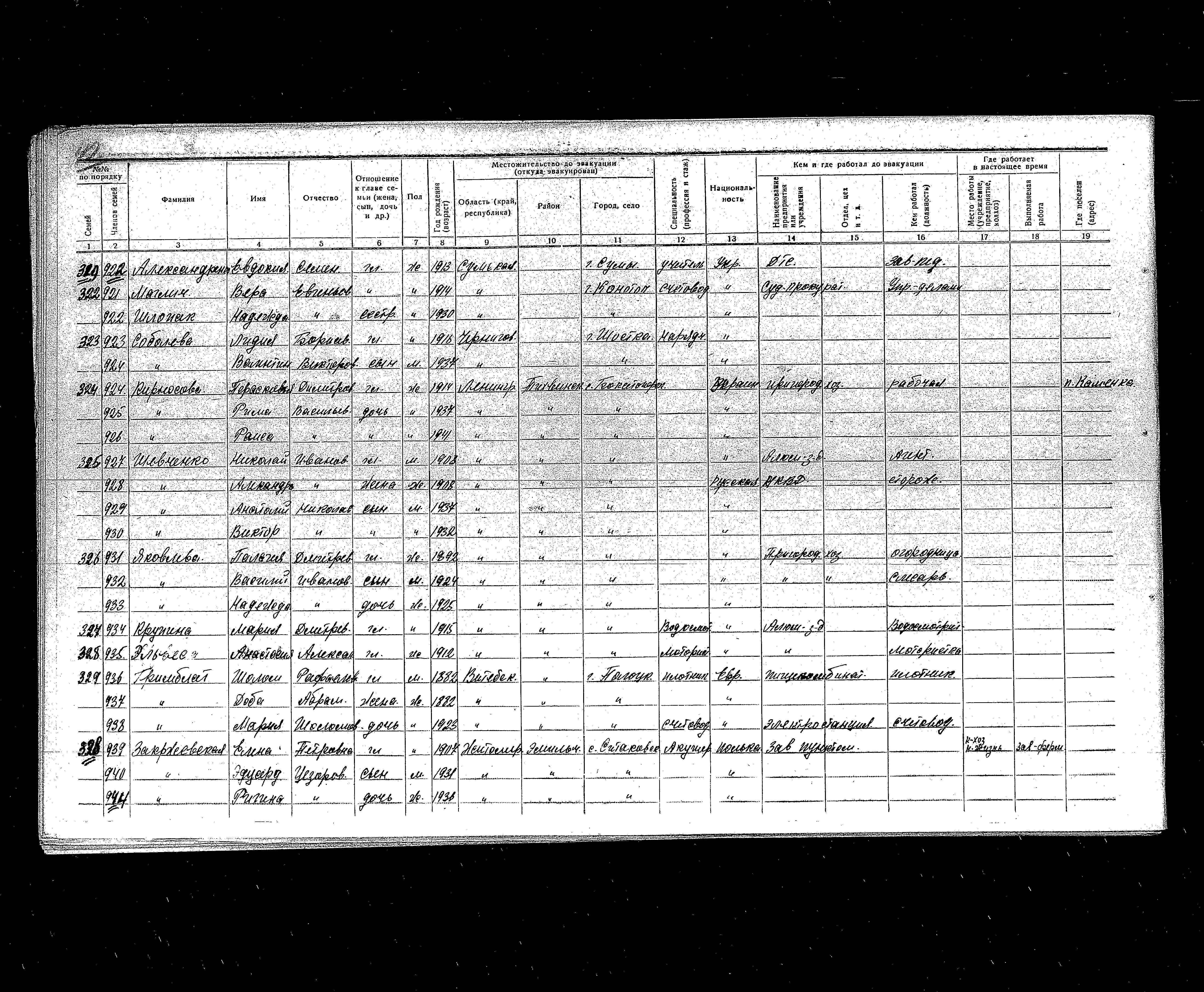 רשימת תושבים שפונו לנפת Aznakayevo, שהוכנה בשנת 1942