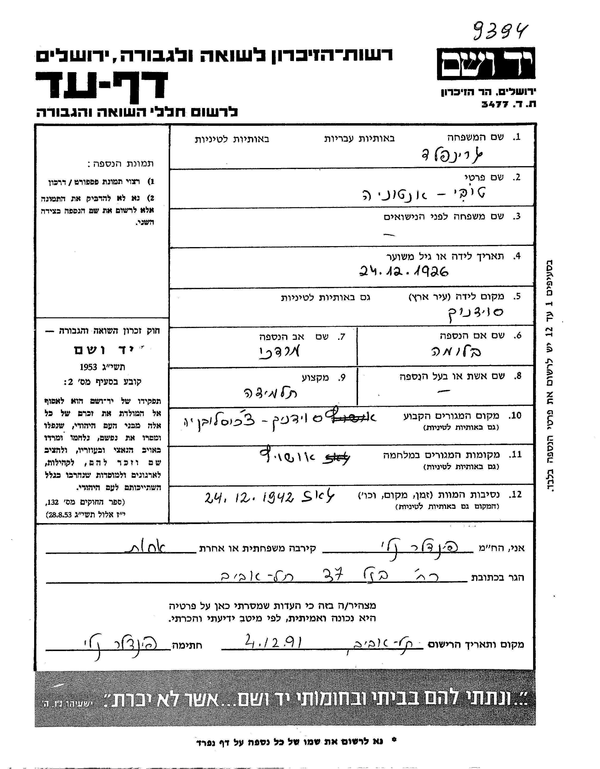 יד ושם - המפעל להנצחת השמות בדפי עד