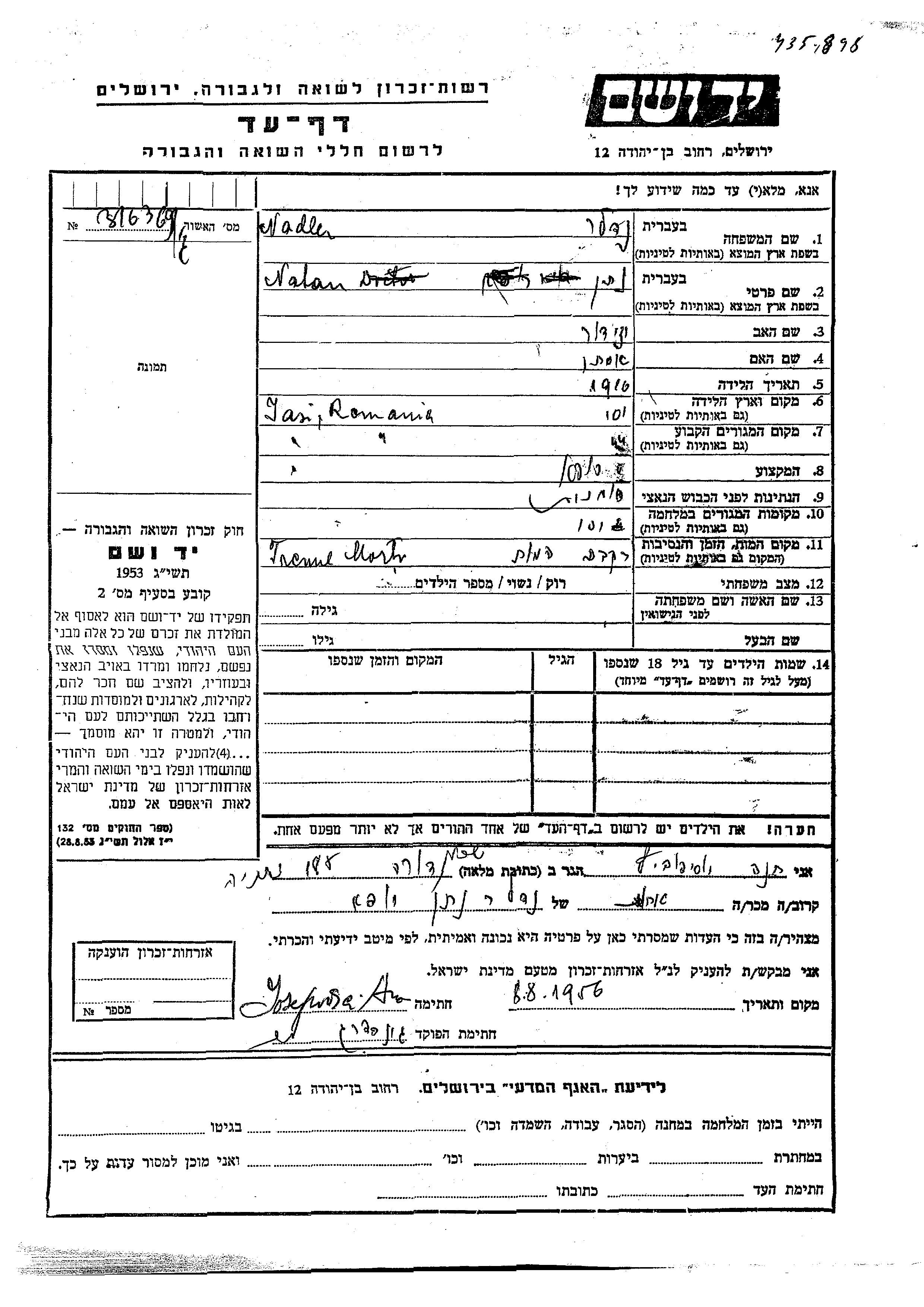 יד ושם - המפעל להנצחת השמות בדפי עד