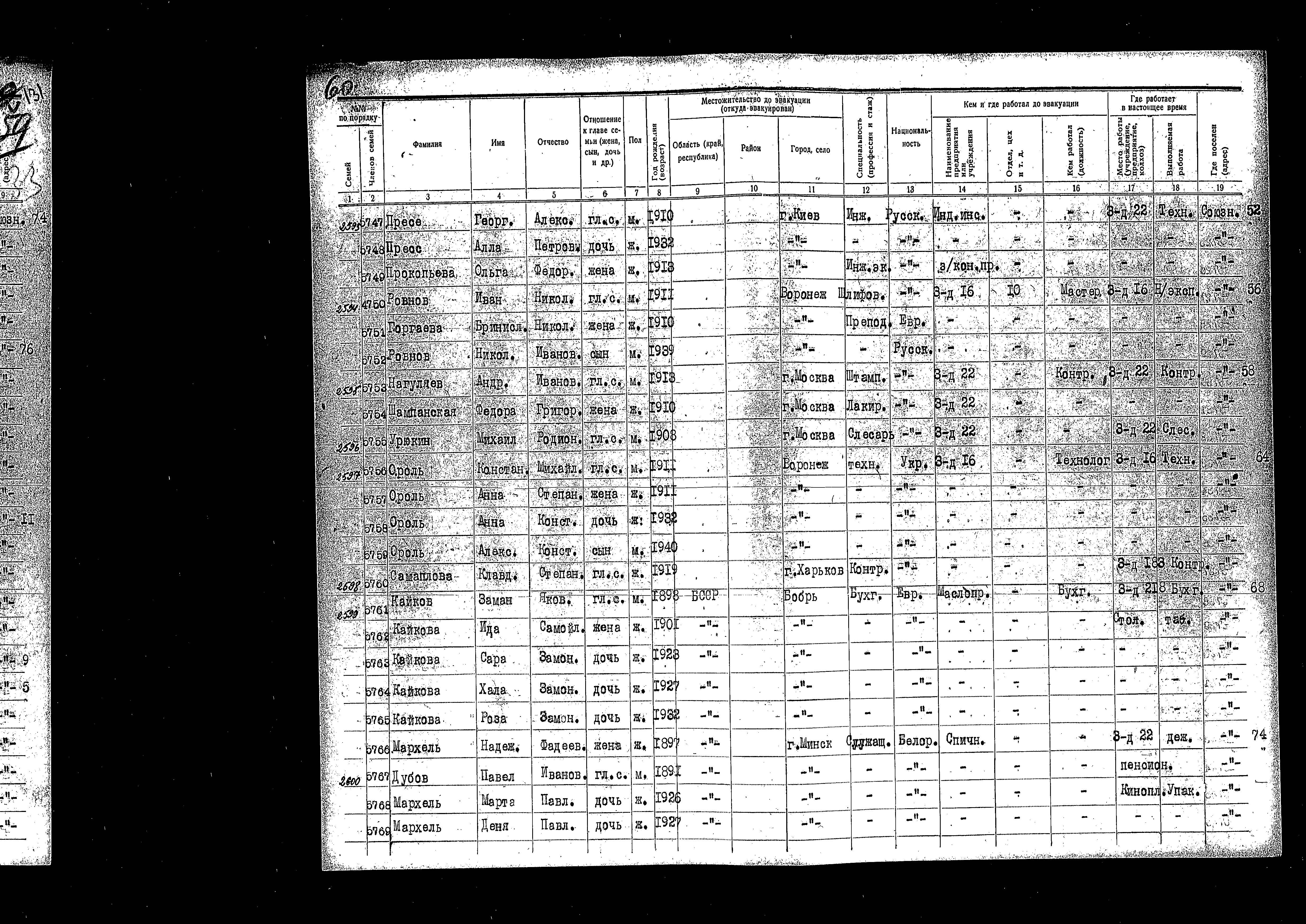 רשימת תושבים שפונו ל- Kazan, שהוכנה בשנת 1942