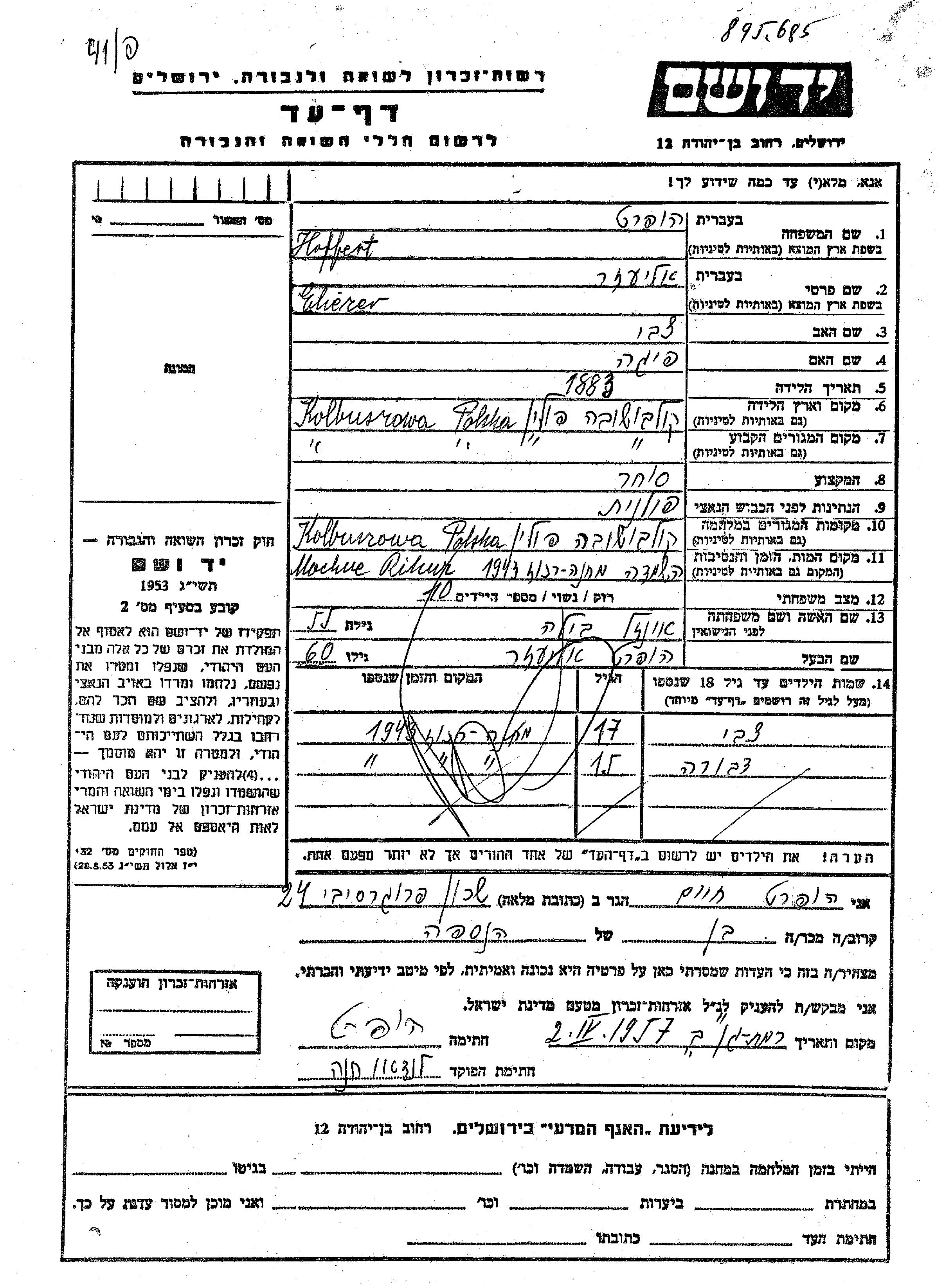 עיר/כפר, גטו/מחנה או אתר רצח או מחוז/אזור או מדינה. שם מקום ניתן לחפש רק בא-ב לטיני.
