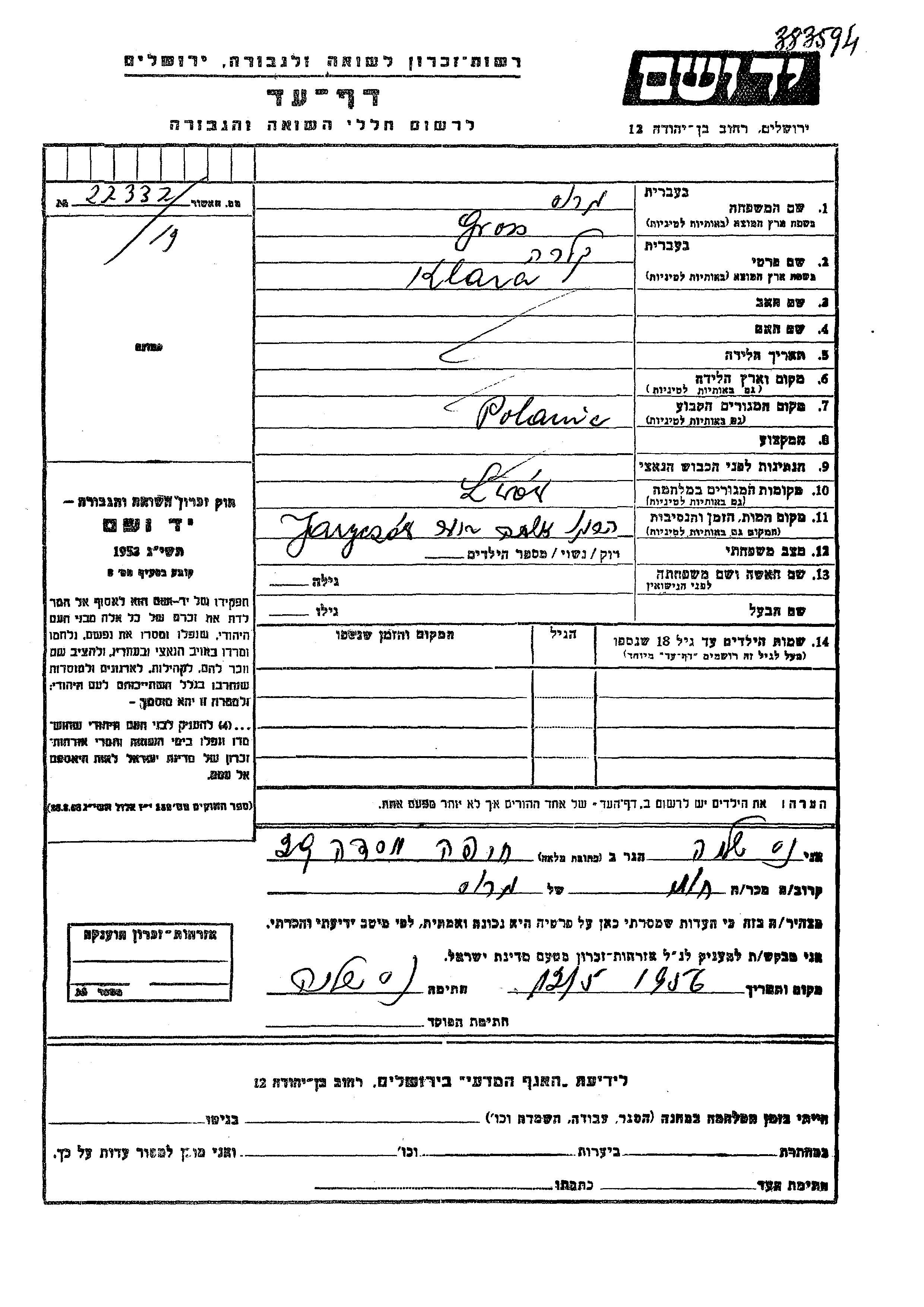 עיר/כפר, גטו/מחנה או אתר רצח או מחוז/אזור או מדינה. שם מקום ניתן לחפש רק בא-ב לטיני.