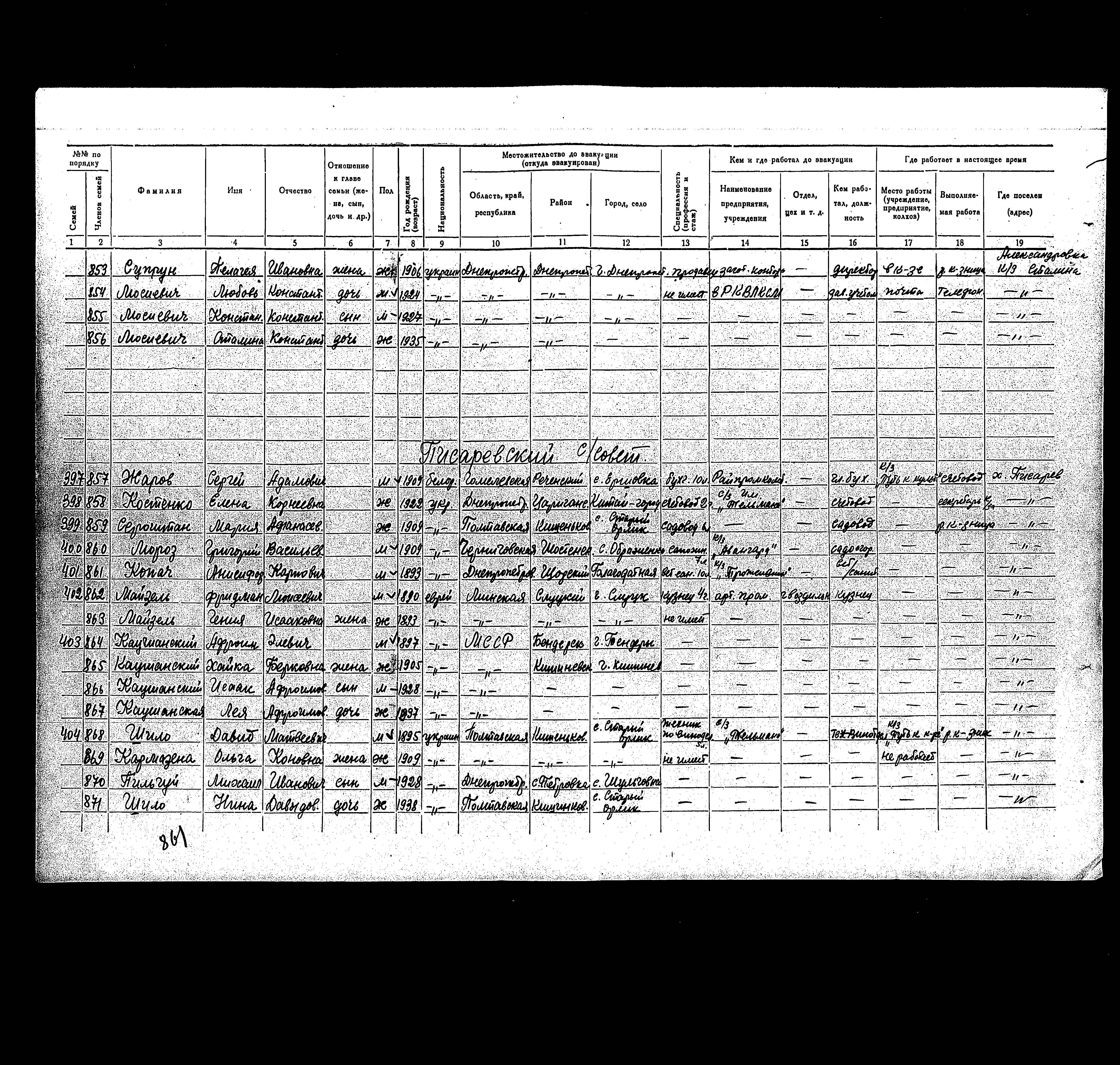 רשימת תושבים שפונו לנפת Solodcha, שהוכנה בשנת 1942
