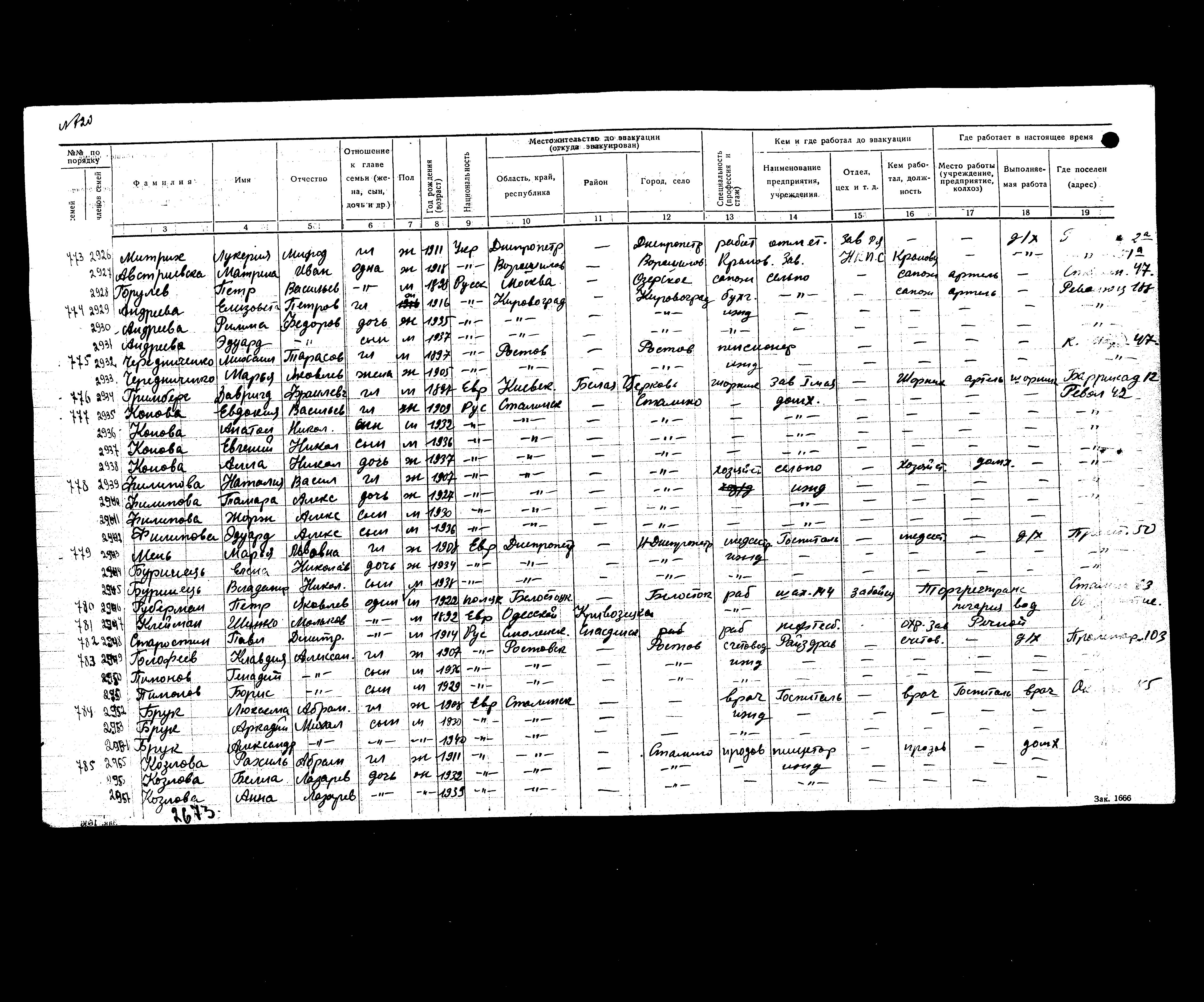 רשימת תושבים שפונו לנפת Kalach, שהוכנה בשנת 1942