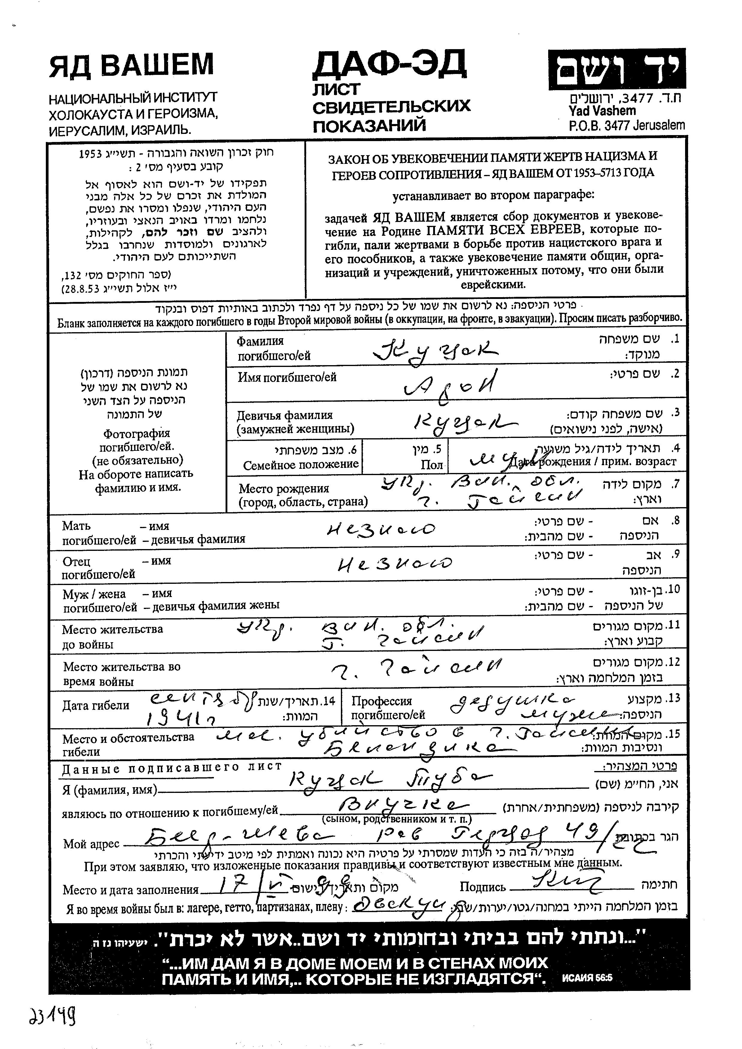 ארון נרצח בשואה. מקום המוות: Vinnitsa שבאוקראינה (ברה"מ) בשנת 1941.