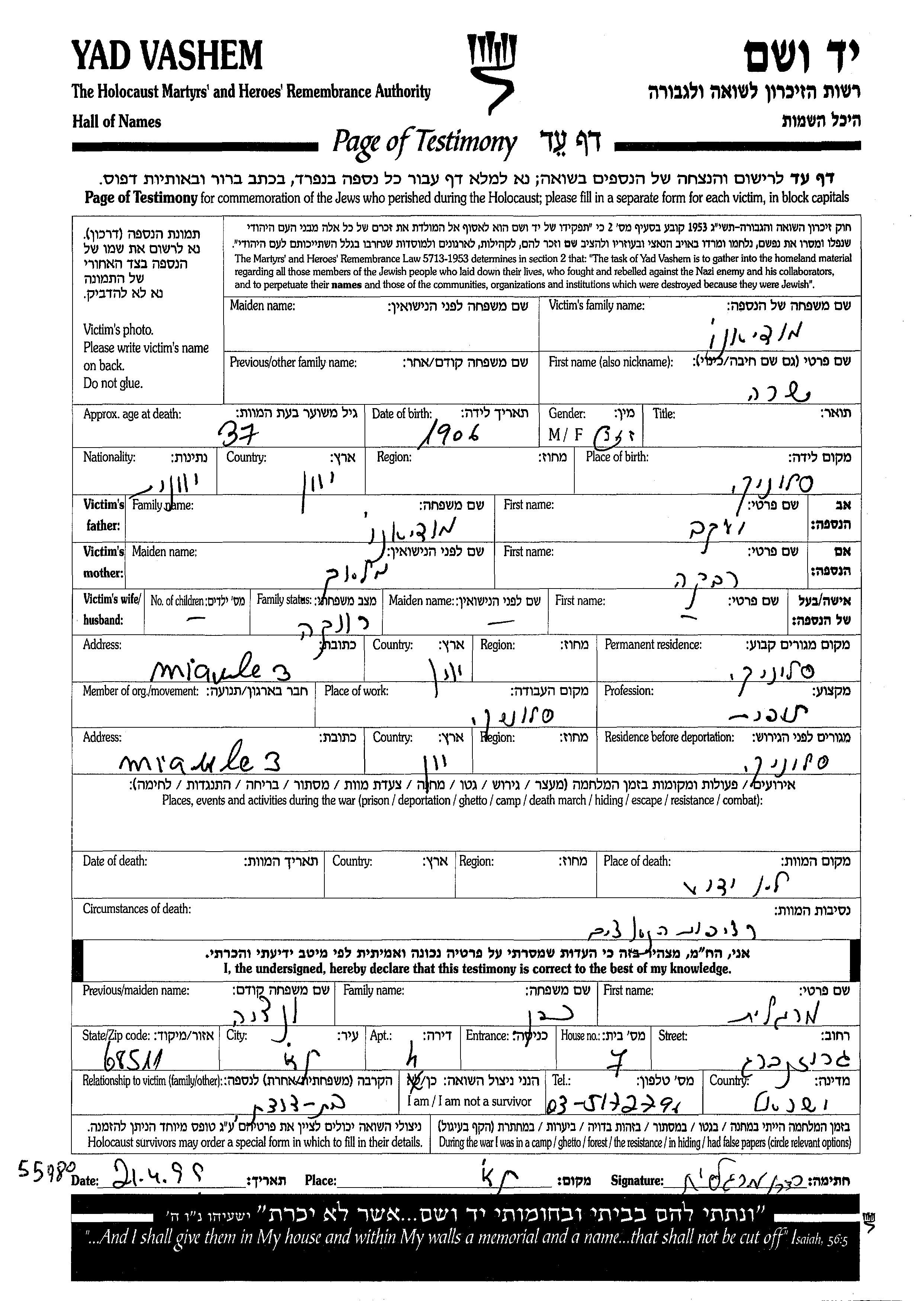 יד ושם - המפעל להנצחת השמות בדפי עד