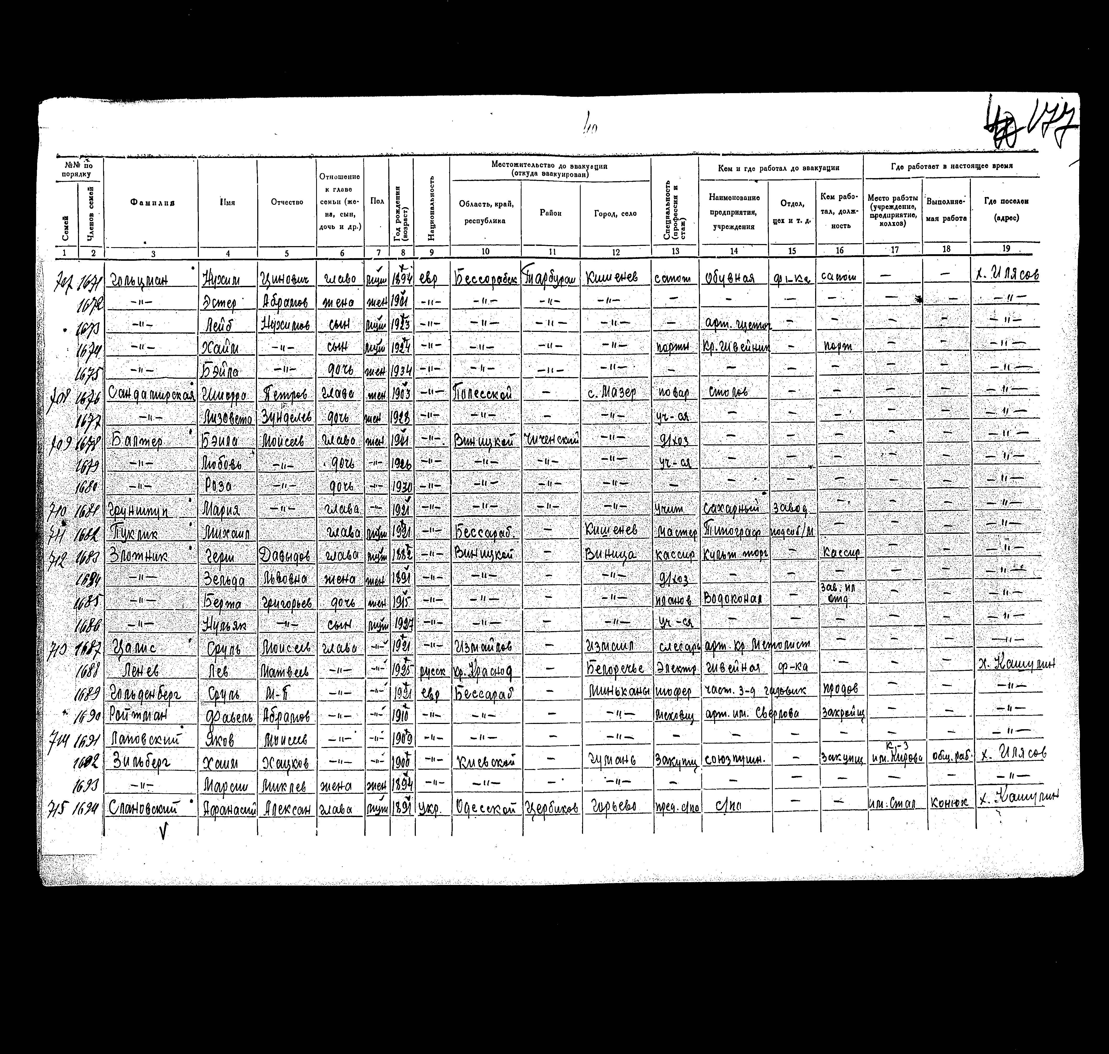 רשימת תושבים שפונו לנפת Rakovskiy, שהוכנה בשנת 1942