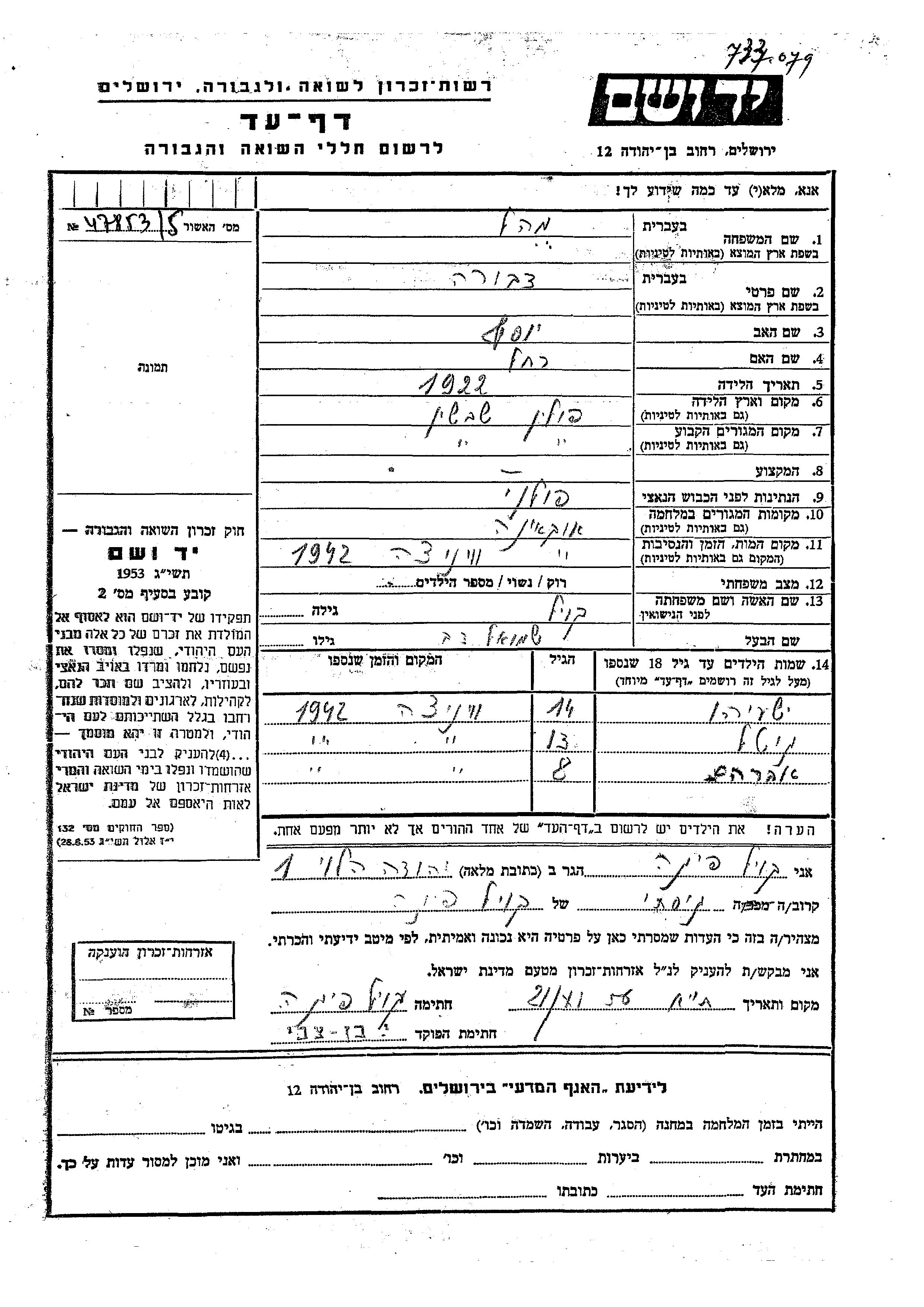 יד ושם - המפעל להנצחת השמות בדפי עד