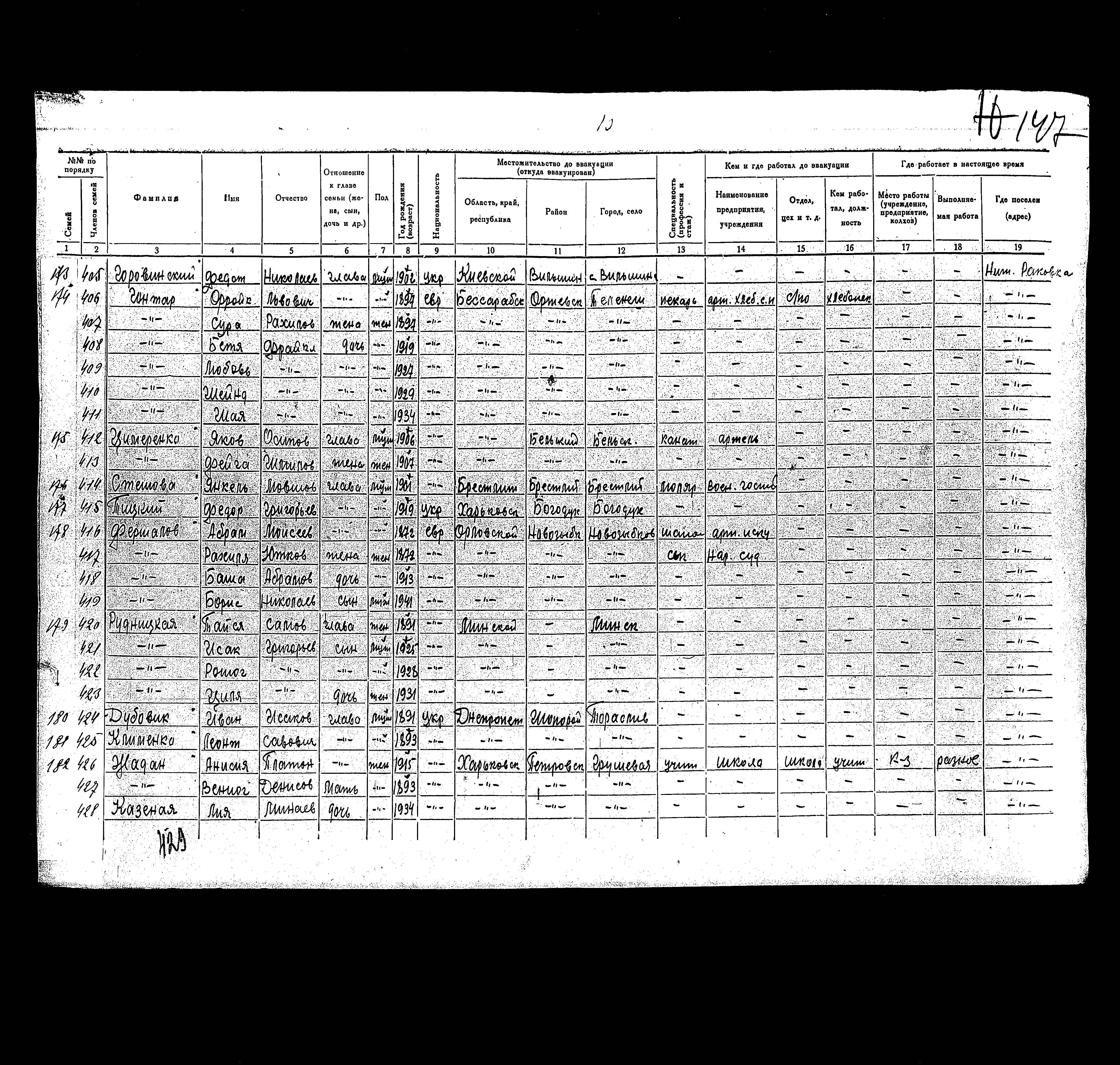 רשימת תושבים שפונו לנפת Rakovskiy, שהוכנה בשנת 1942