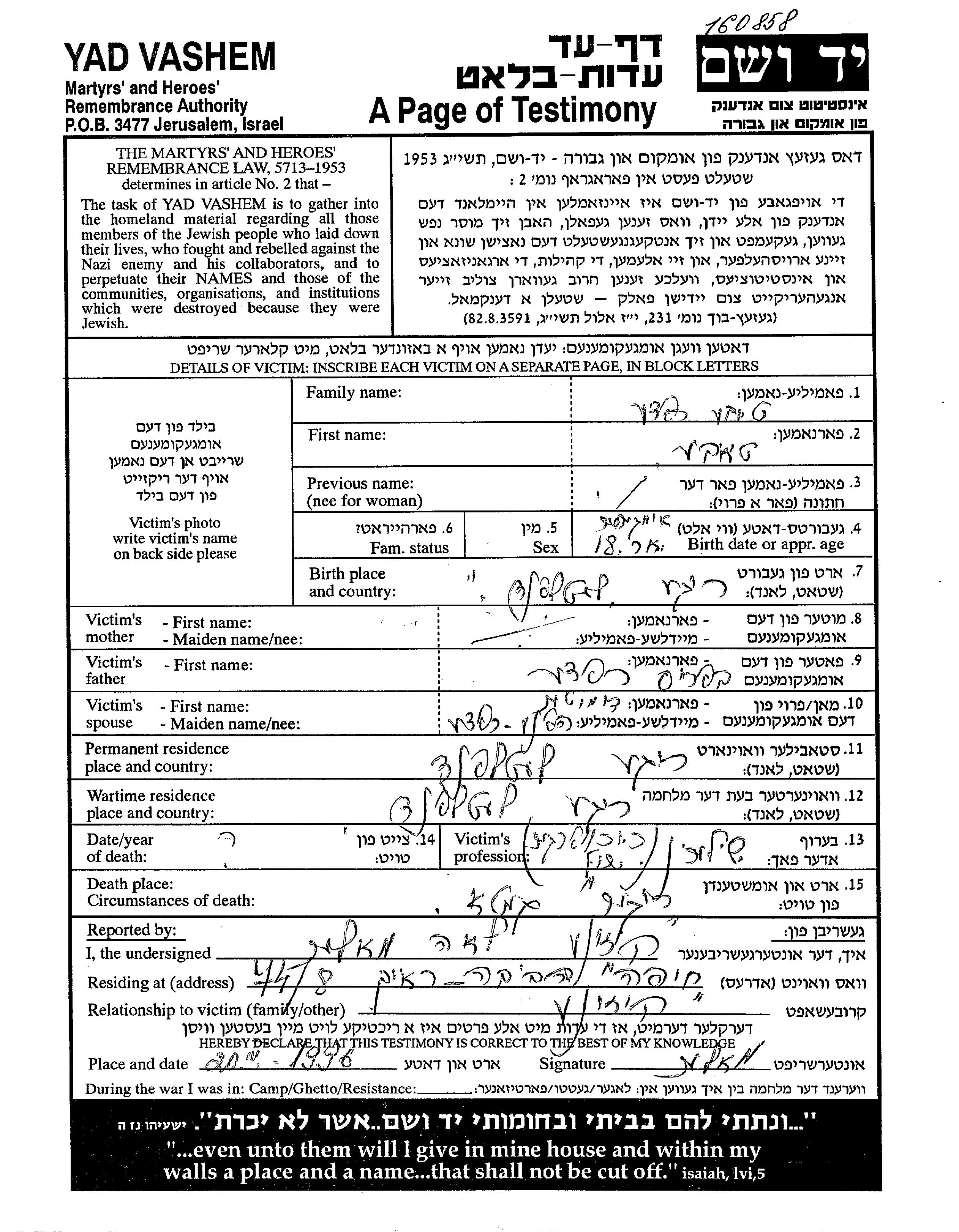 יד ושם - המפעל להנצחת השמות בדפי עד