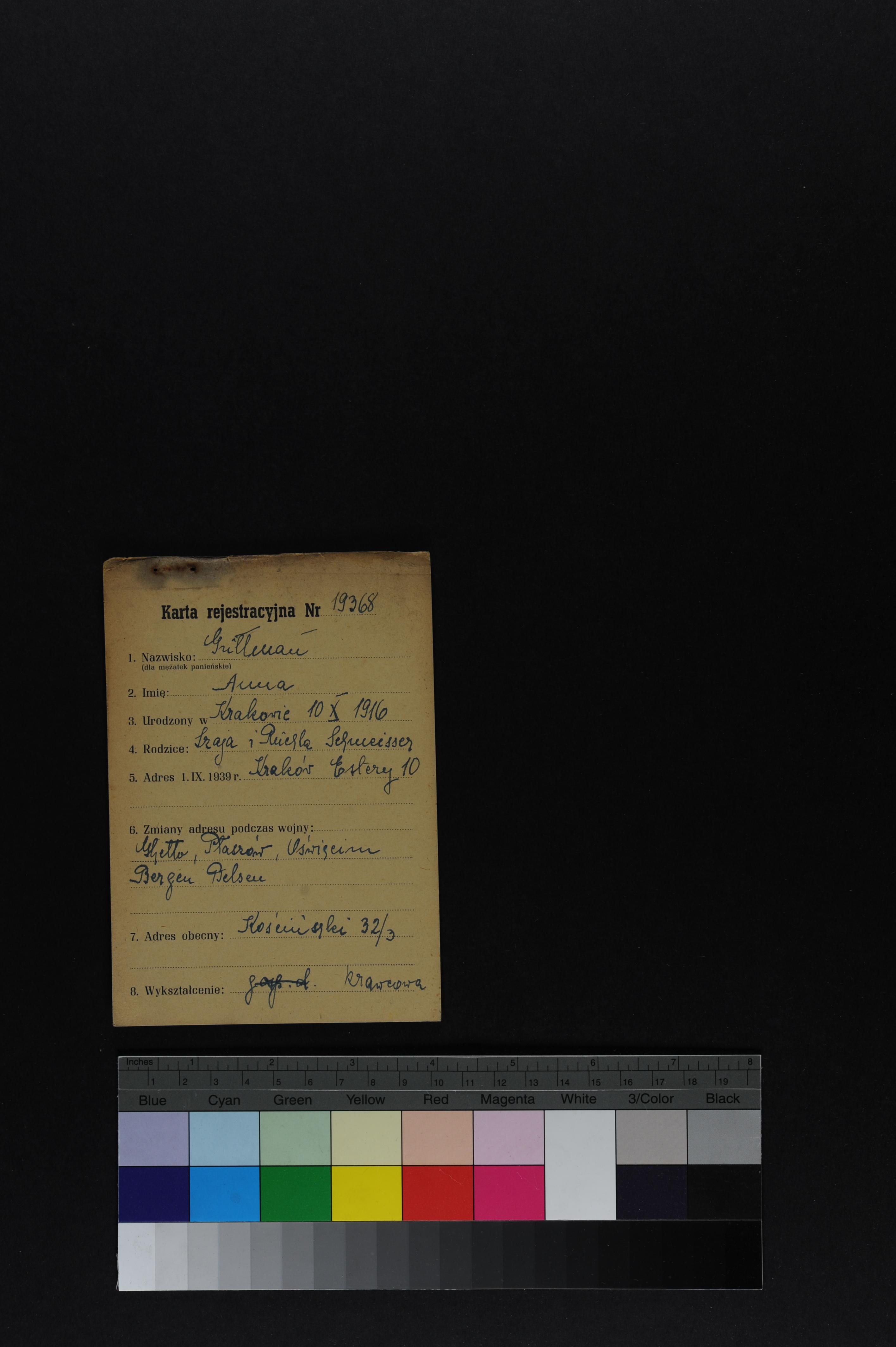 כרטסת של הוועד היהודי ב- Krakow ובה שמות ניצולים מהשנים 1945-1947