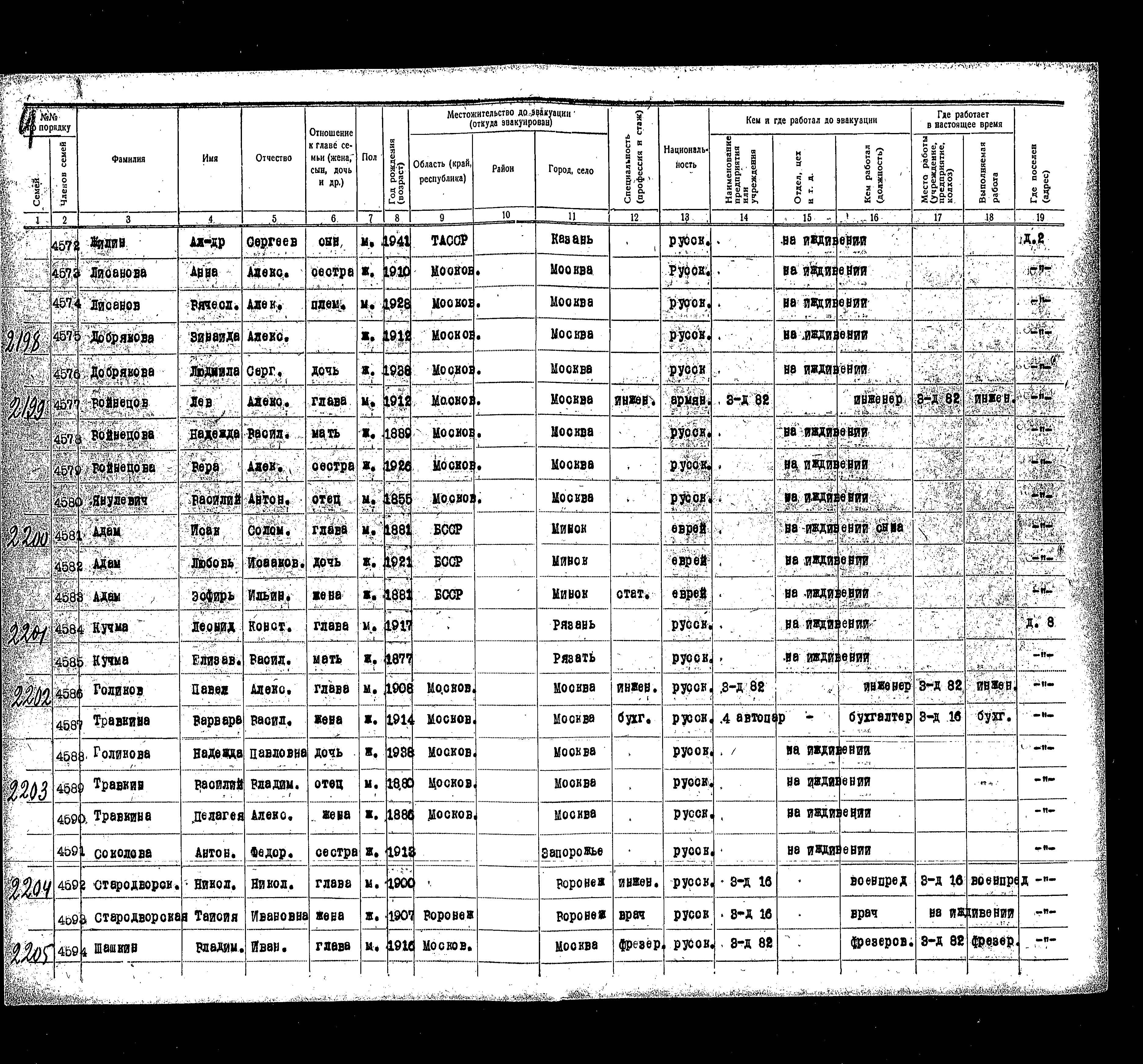 רשימת תושבים שפונו ל- Kazan, שהוכנה בשנת 1942
