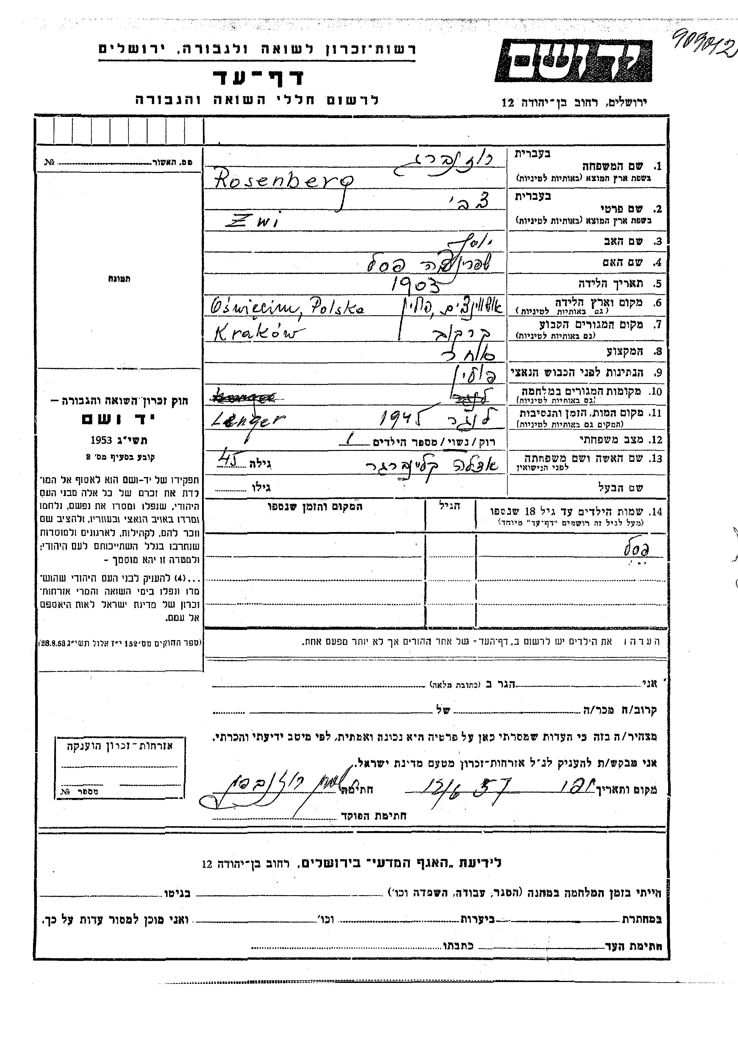 חיפוש שם מוסר דף העד. חיפוש לפי כל שם פרטי, כולל כינוי או שם חיבה