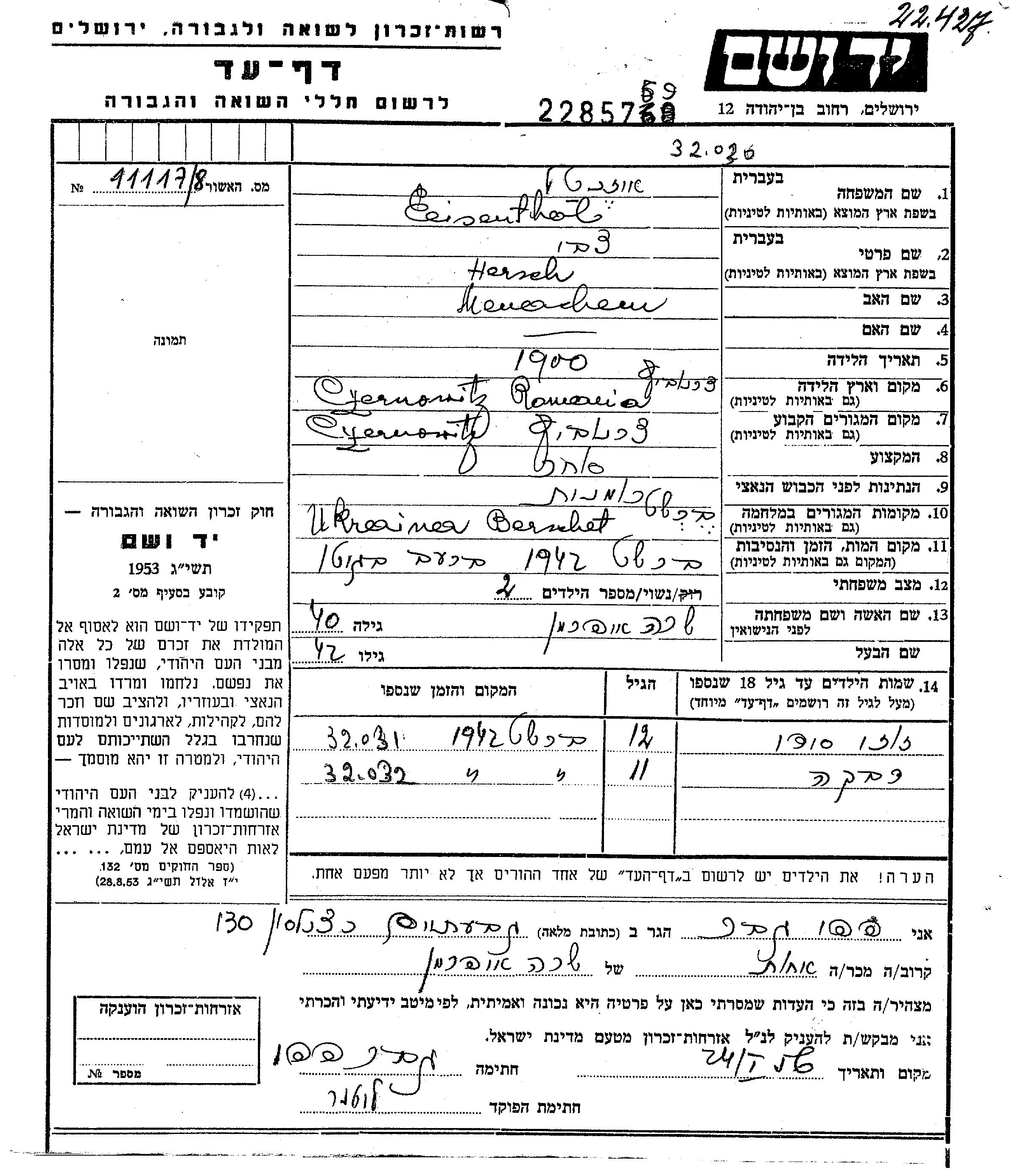 Eizenthal רבקה Cernovcy, רומניה דף-עד