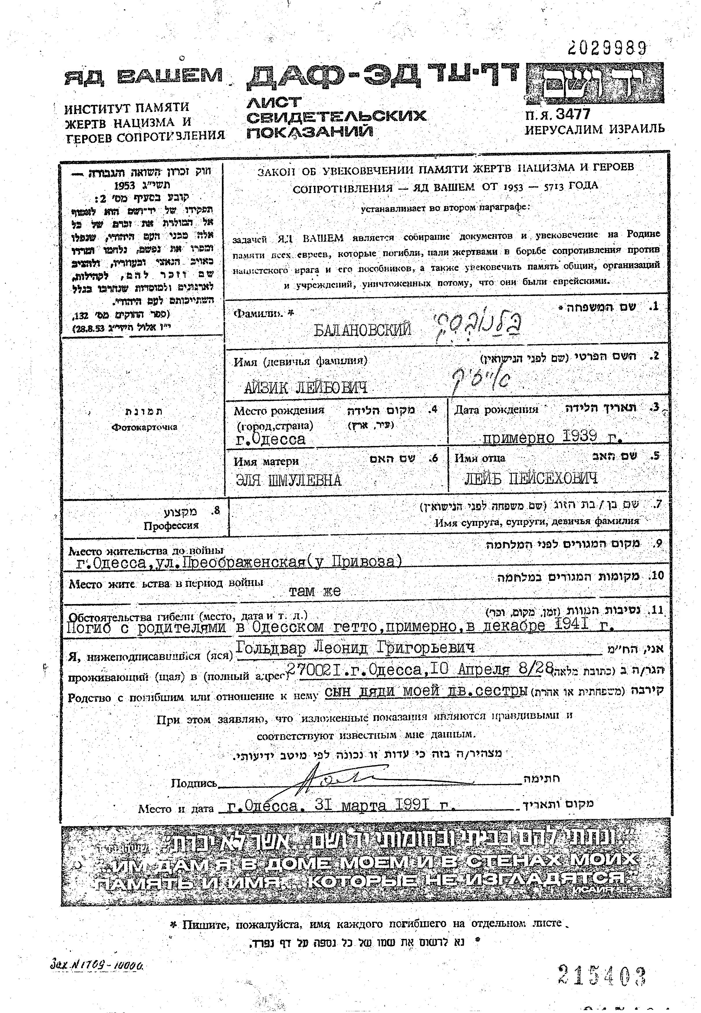 בלנובסקי Aizik 1939 Odessa, אוקראינה (ברה"מ) דף-עד