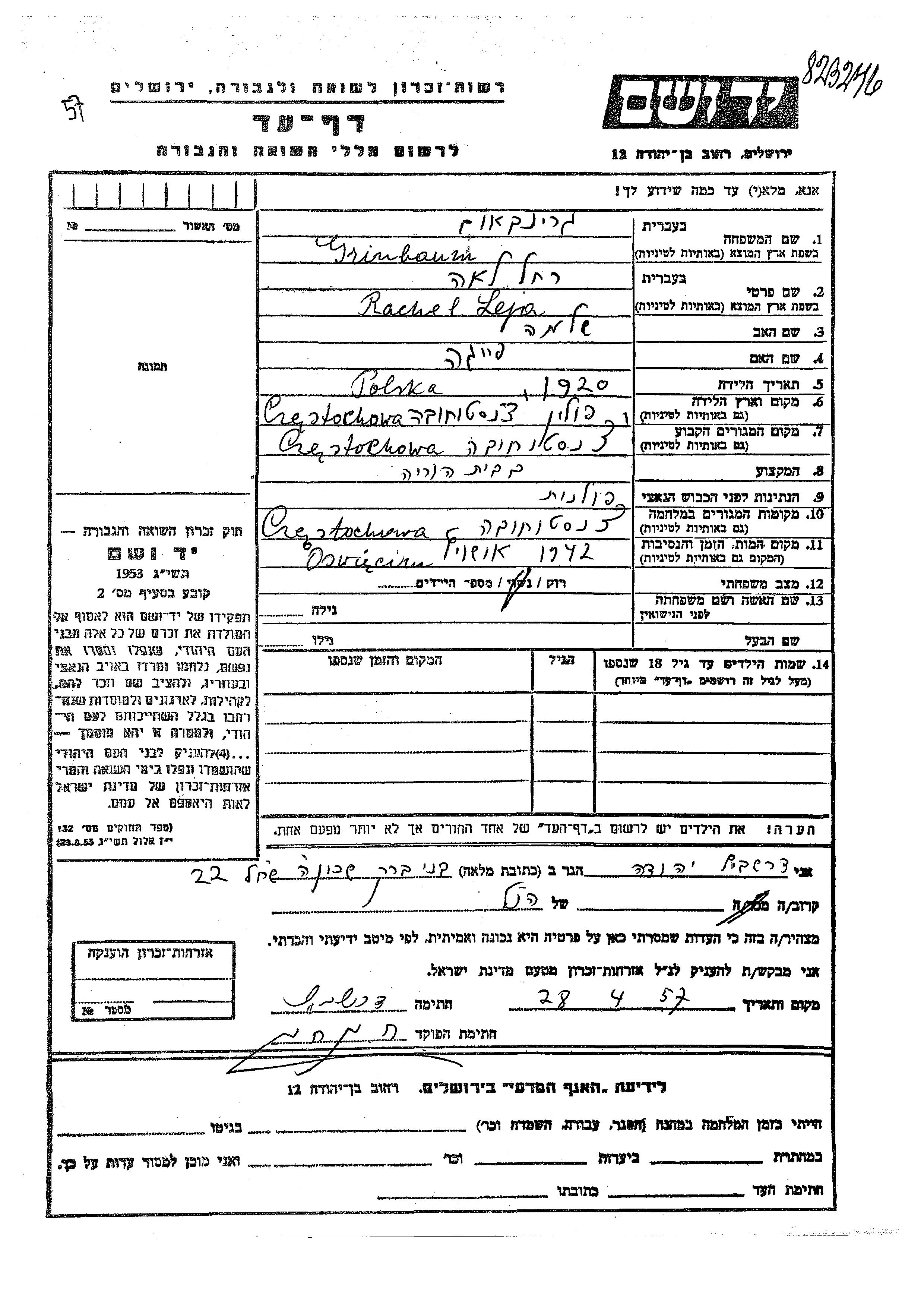 מאגר שמות קרבנות השואה