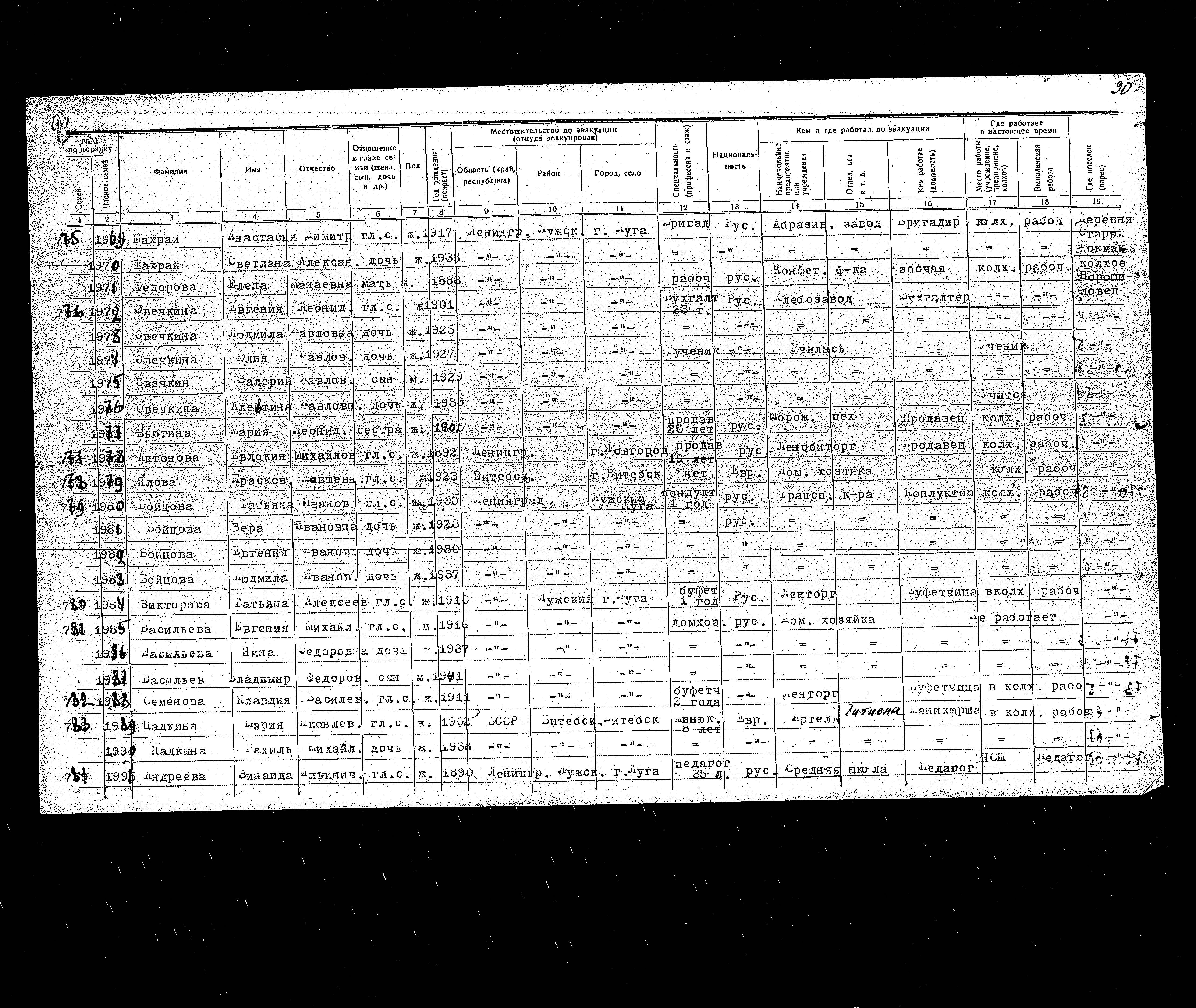 רשימת תושבים שפונו לנפת Zainsk, שהוכנה בשנת 1942