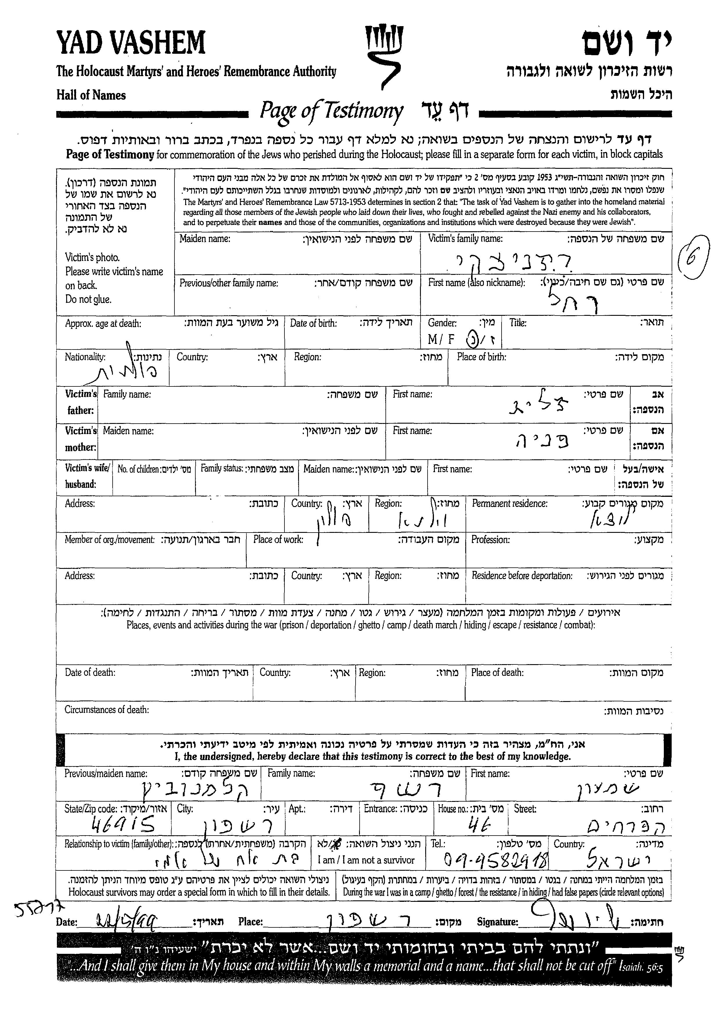 חיפוש שם מוסר דף העד. חיפוש לפי כל שם פרטי, כולל כינוי או שם חיבה