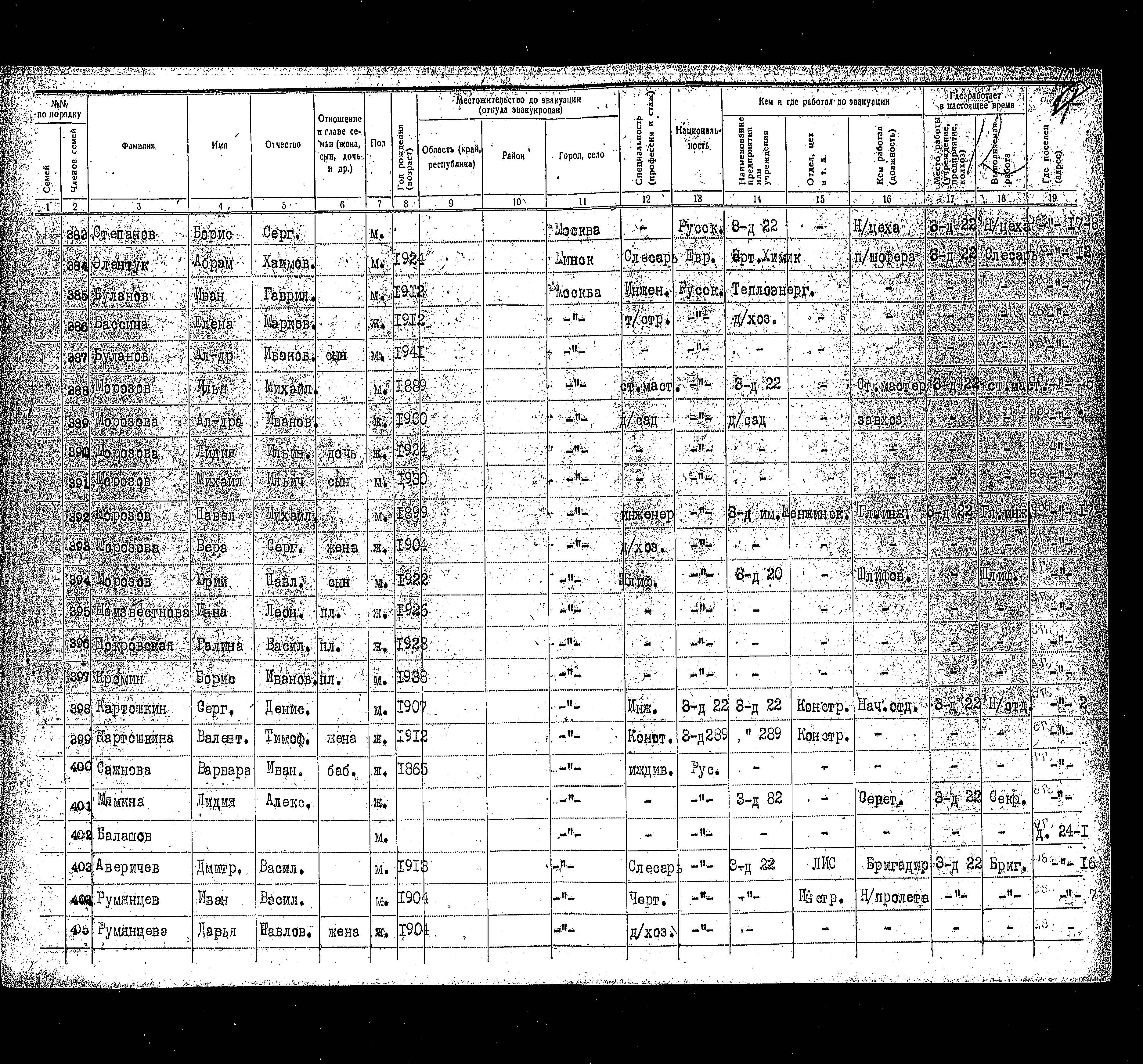רשימת תושבים שפונו ל- Kazan, שהוכנה בשנת 1942