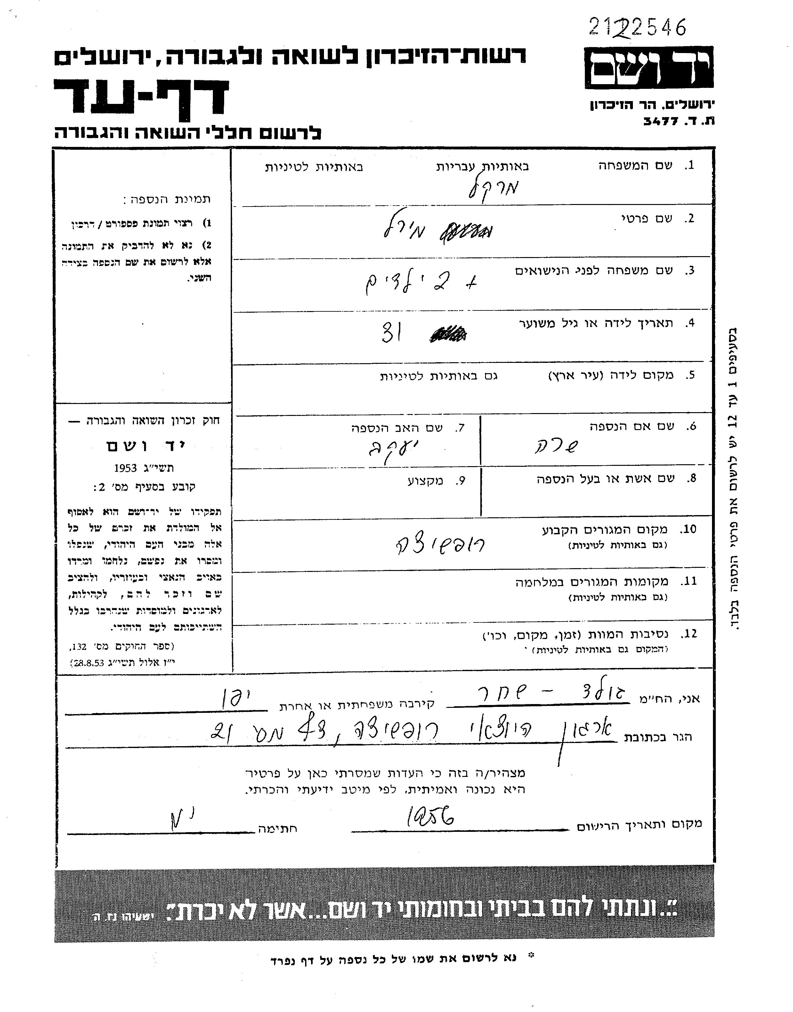 יד ושם - המפעל להנצחת השמות בדפי עד