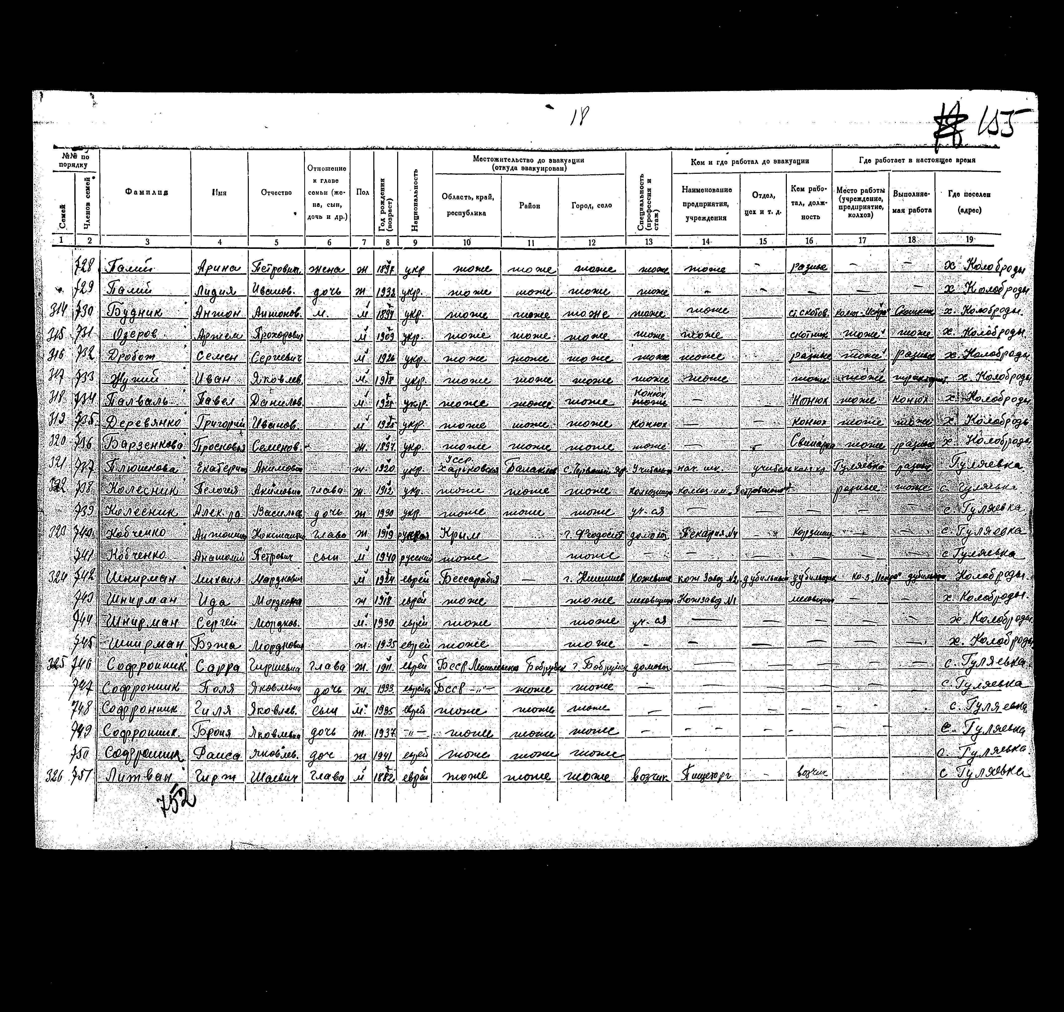 ראיסה נרשם/ה בעקבות הפינוי\ באזורים הפניים של ברית המועצות.