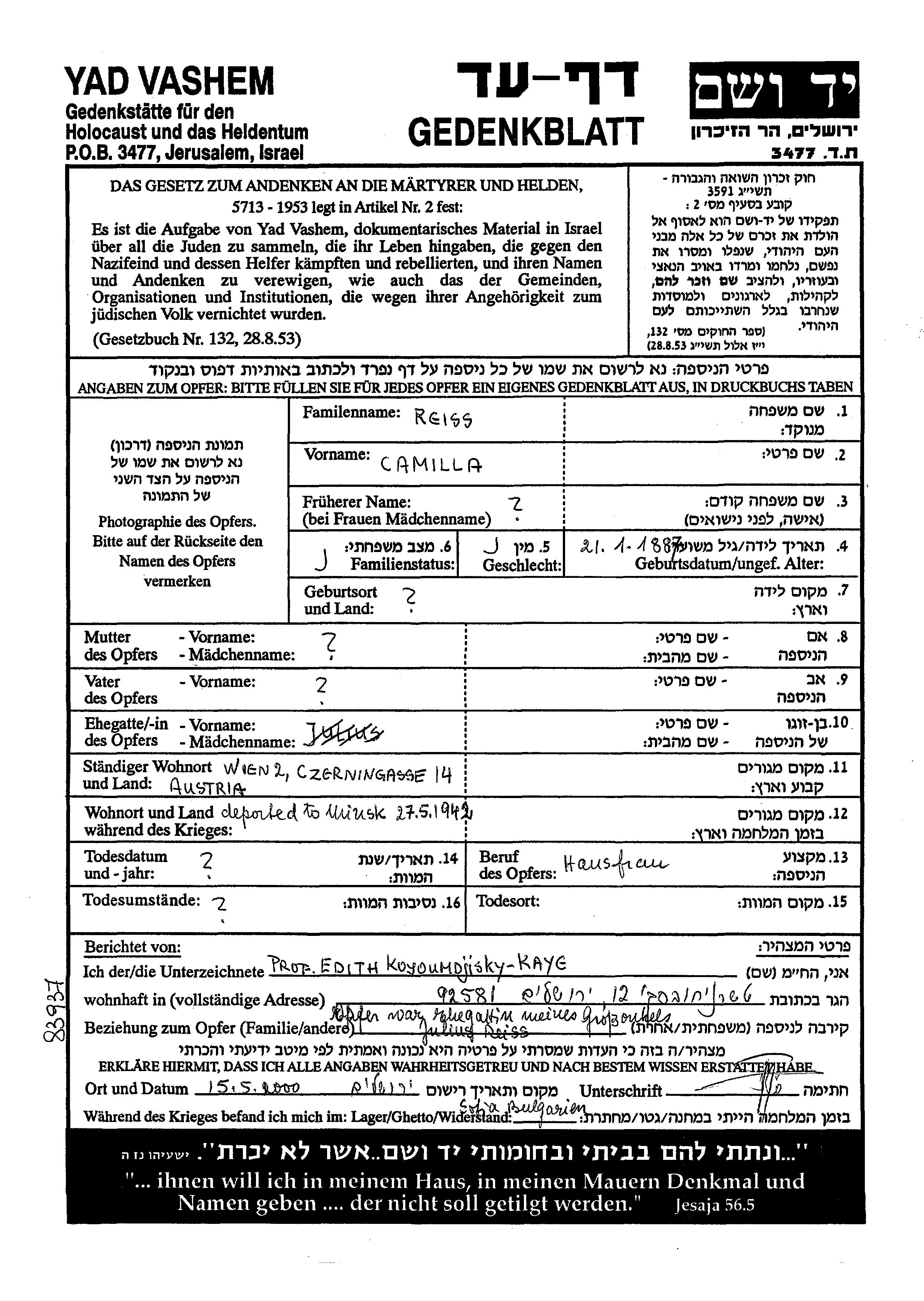 Search by name of any place during the Holocaust period: Town,Village, Camp, Ghetto, District, Region or Country