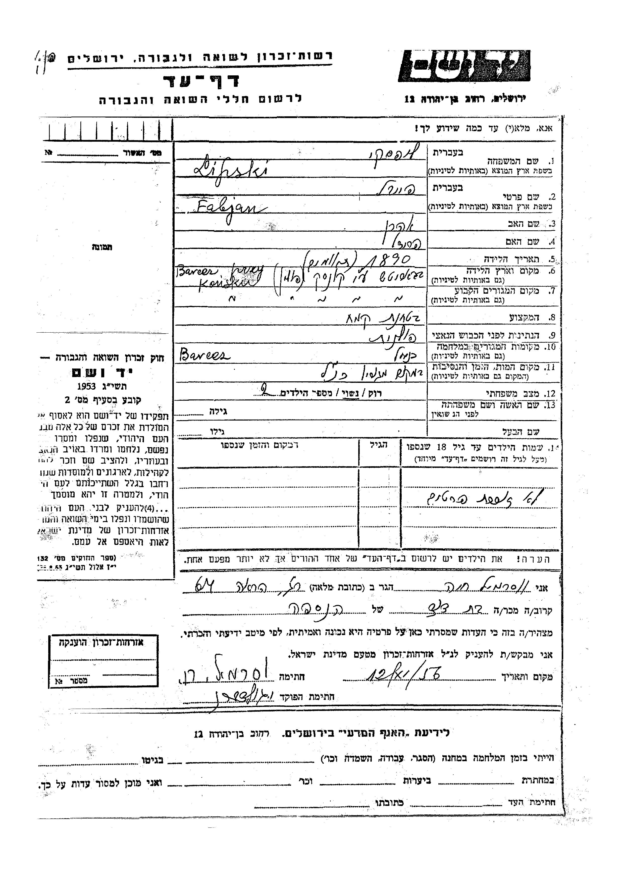 יד ושם - המפעל להנצחת השמות בדפי עד