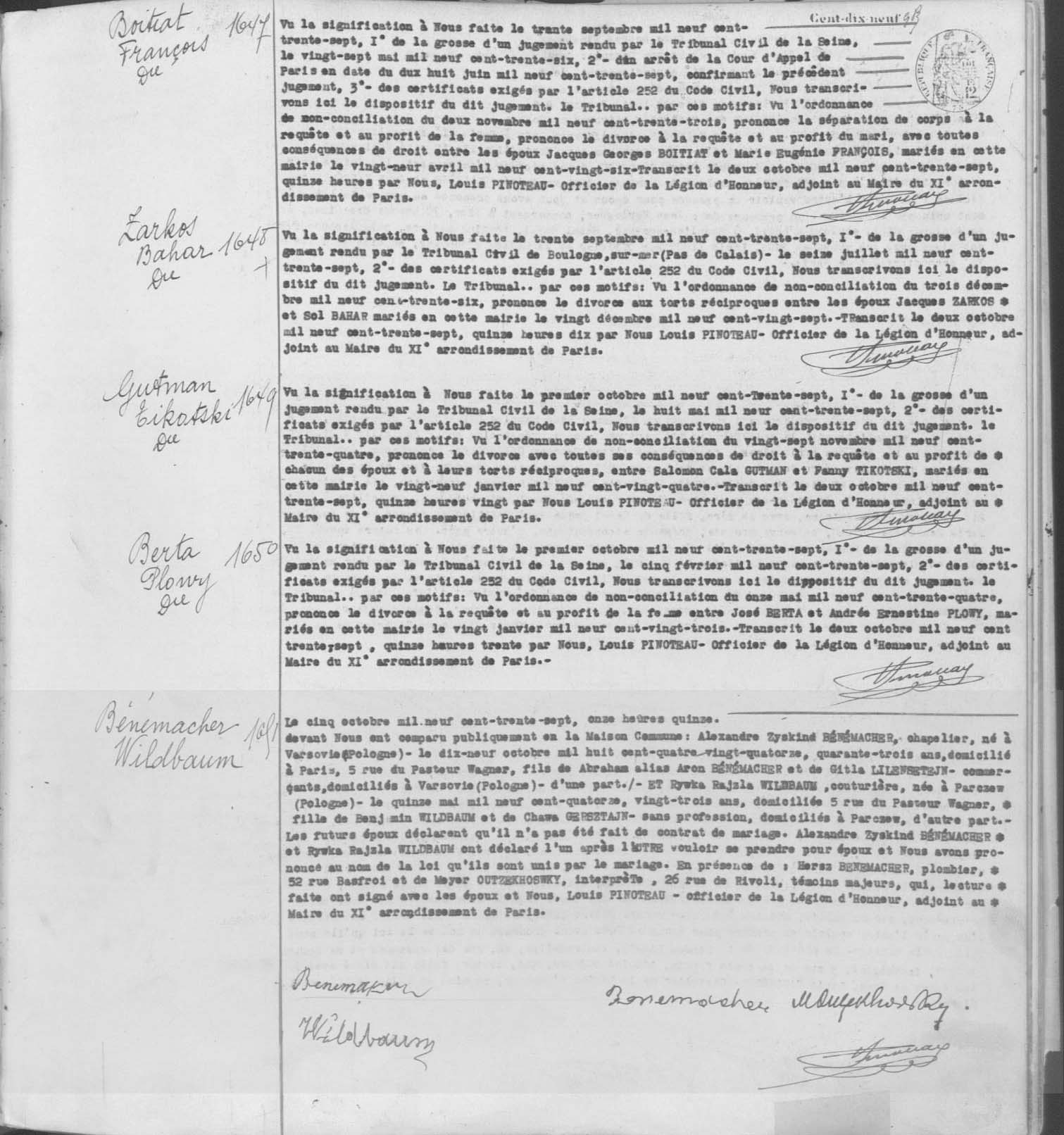 | Bénémacher | Alexandre Zyskind | 1894 | Paris, צרפת | תעודת נישואין |