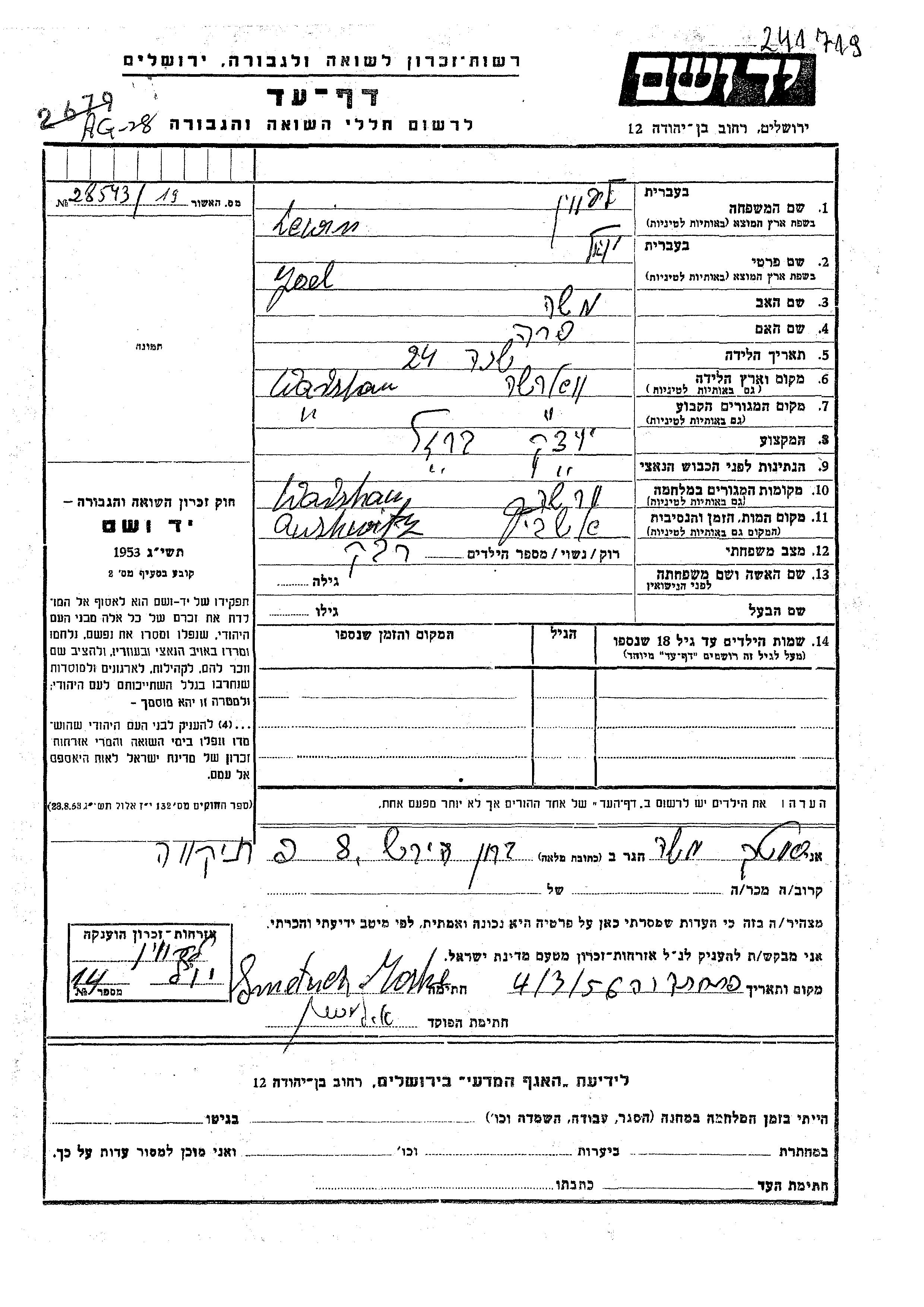 יד ושם - המפעל להנצחת השמות בדפי עד