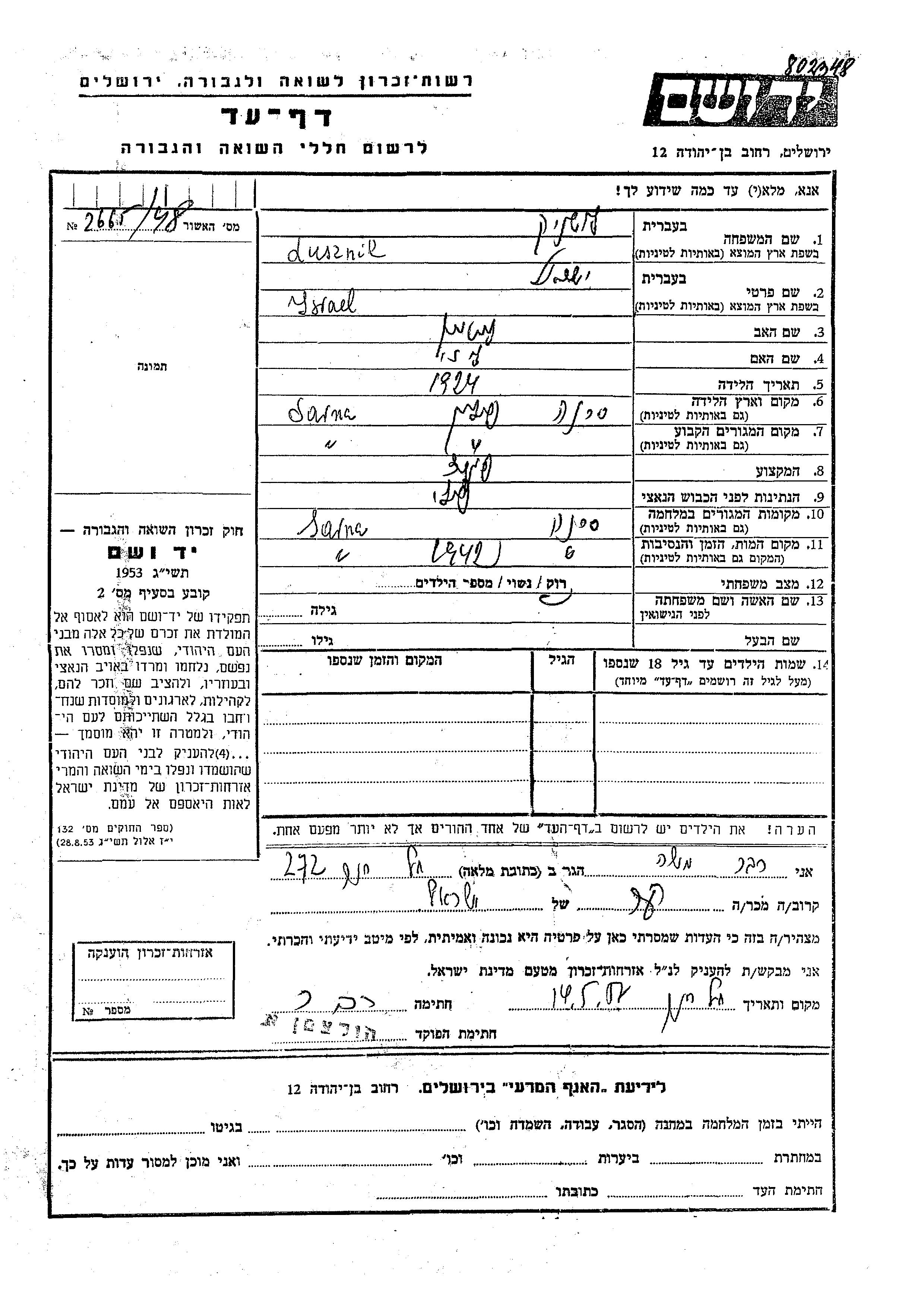 Israel Lusznik נולד בSarna שבפולין בשנת 1924 לליטמן. הוא היה פקיד ורווק. לפני מלחמת העולם השניה התגורר בSarna שבפולין. בזמן המלחמה הוא היה בSarna שבפולין. הוא נרצח בשואה. מקום המוות: Sarna שבפולין בשנת 1942.