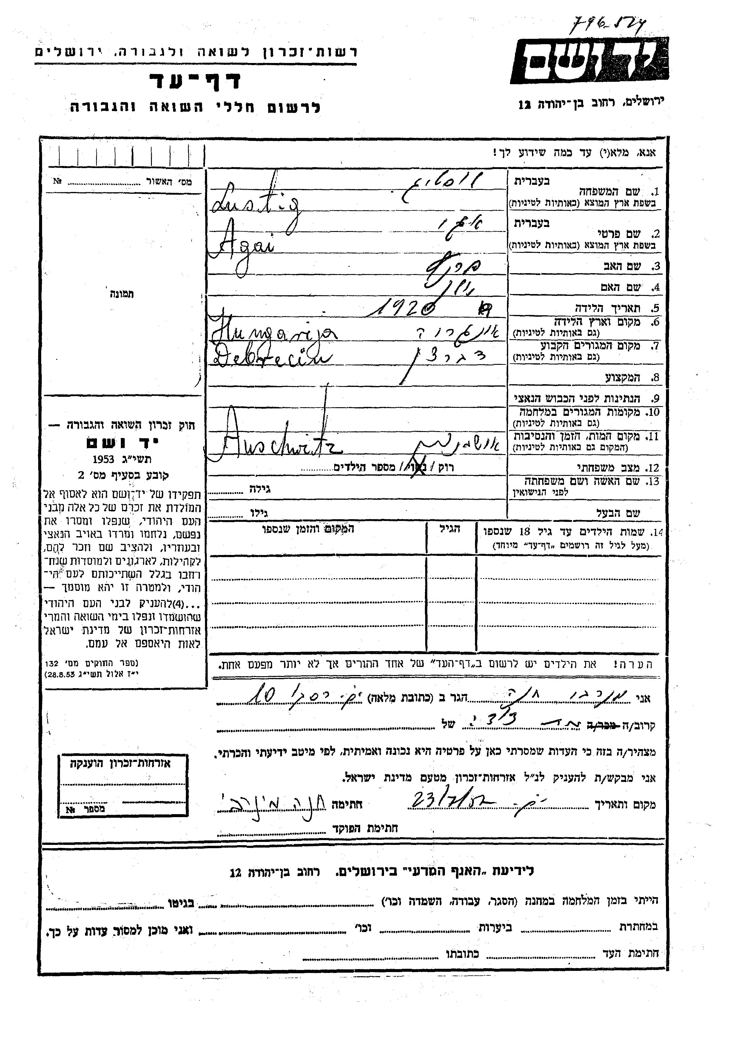 אגי נרצחה בשואה. מקום המוות: Oświęcim שבפולין.