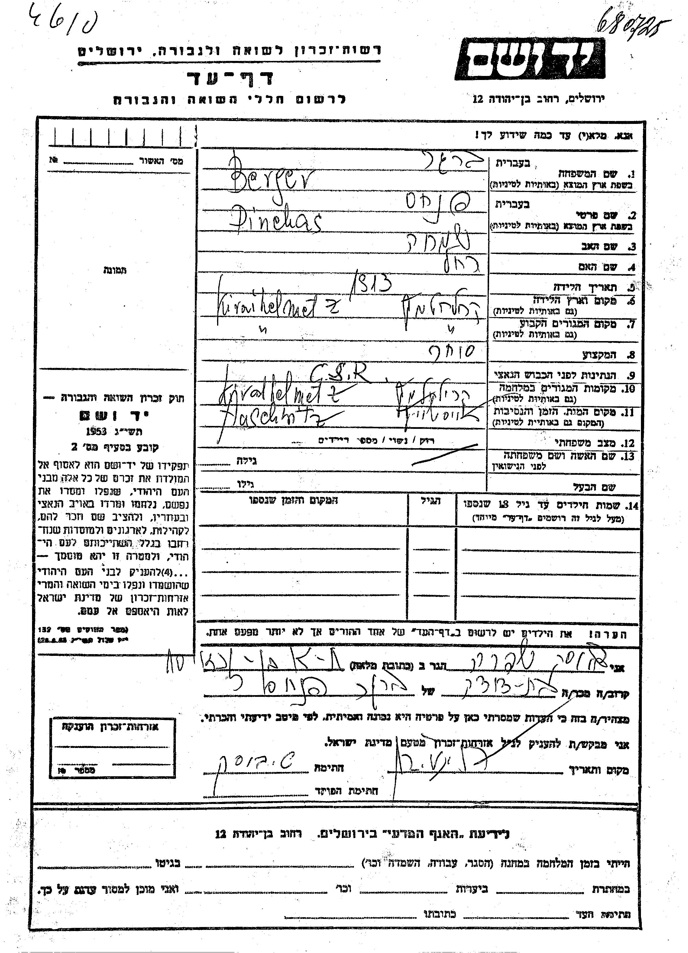 ברגר Pinchas 1913 Kiraihelmetz, צ'כוסלובקיה דף-עד