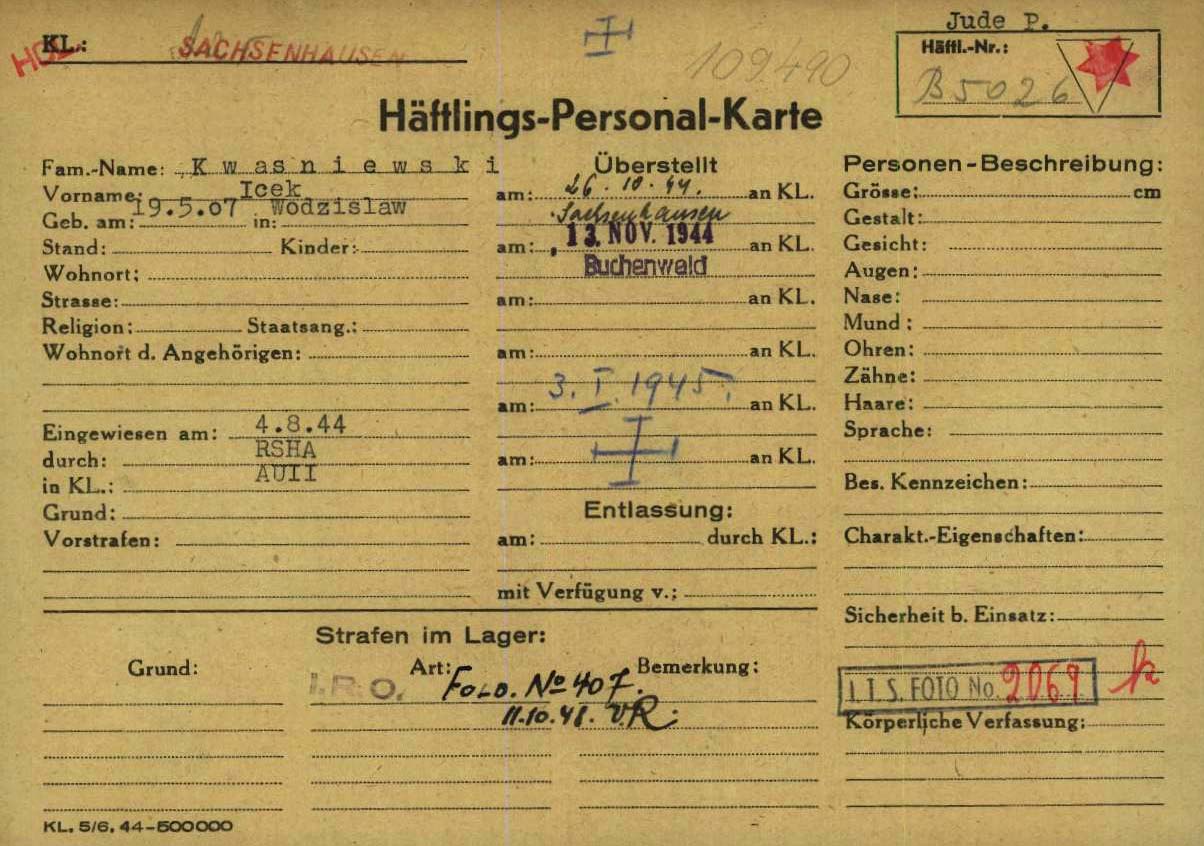 איציק קוואשניבסקי נולד בשנת 1907. לפני מלחמת העולם השניה התגורר בWodzislaw שבפולין.