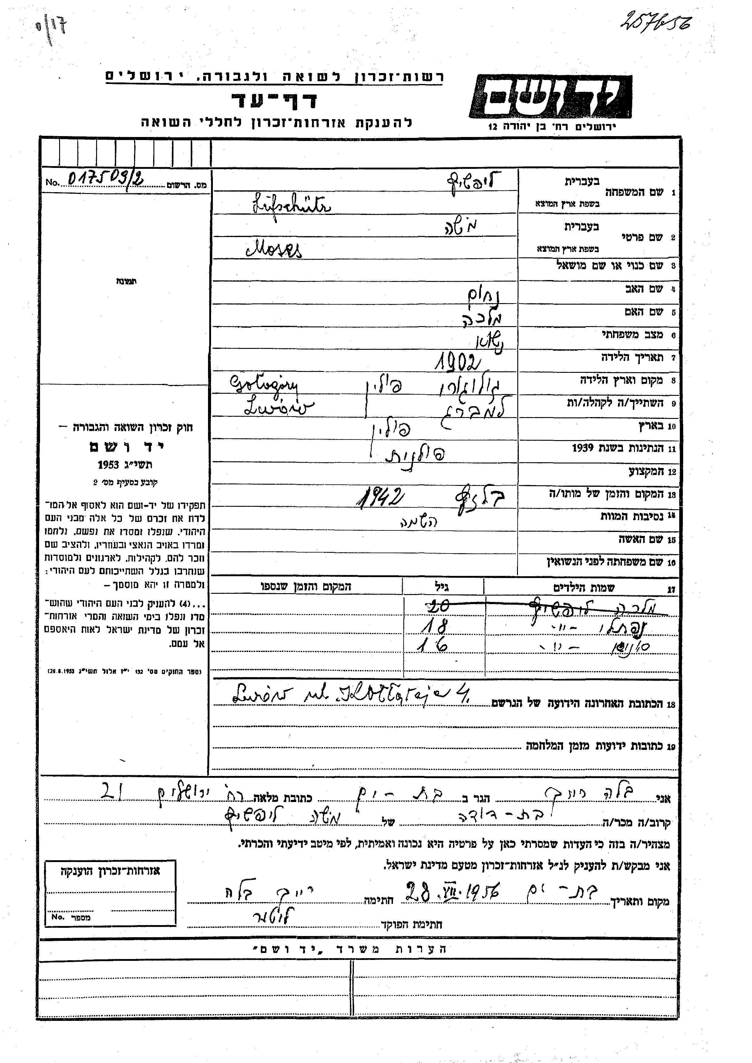 חיפוש שם מוסר דף העד. חיפוש לפי כל שם פרטי, כולל כינוי או שם חיבה