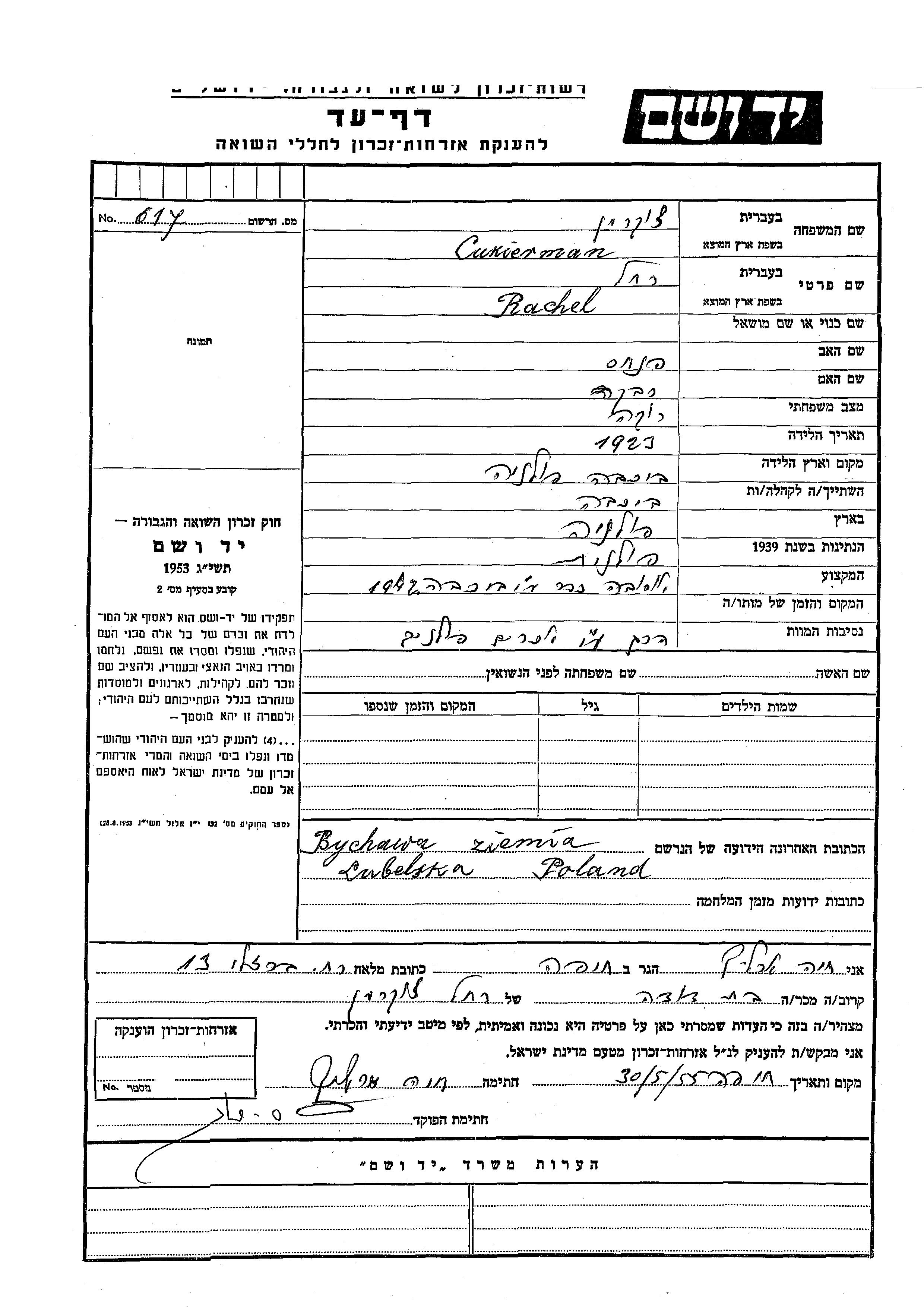 Cukerman רחל 1923 Bychawa, פולין דף-עד