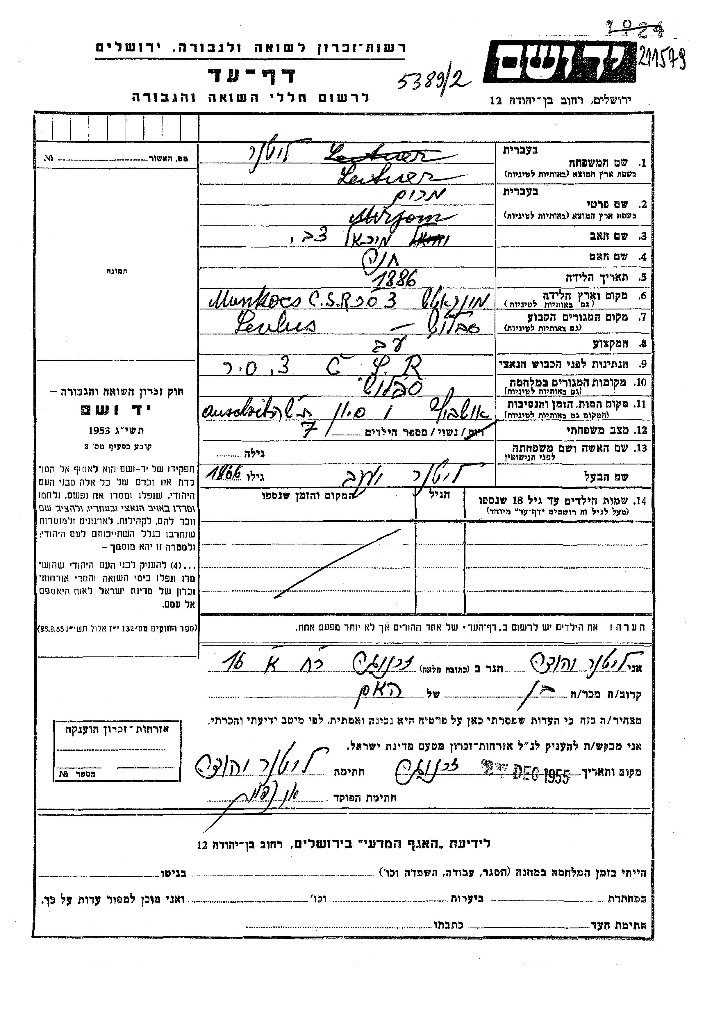 עיר/כפר, גטו/מחנה או אתר רצח או מחוז/אזור או מדינה. שם מקום ניתן לחפש רק בא-ב לטיני.