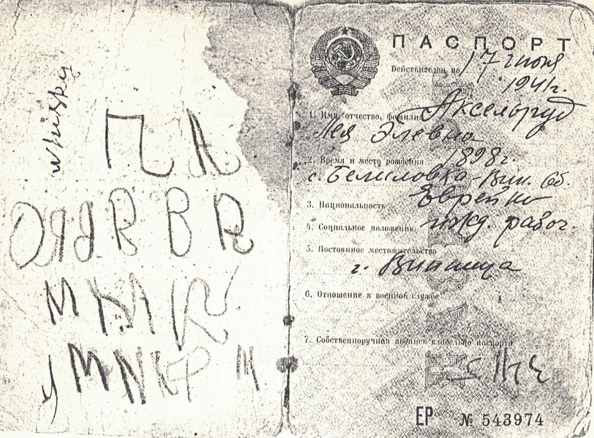 Akselrud Leya 1898 Vinnitsa, אוקראינה (ברה"מ) דרכון