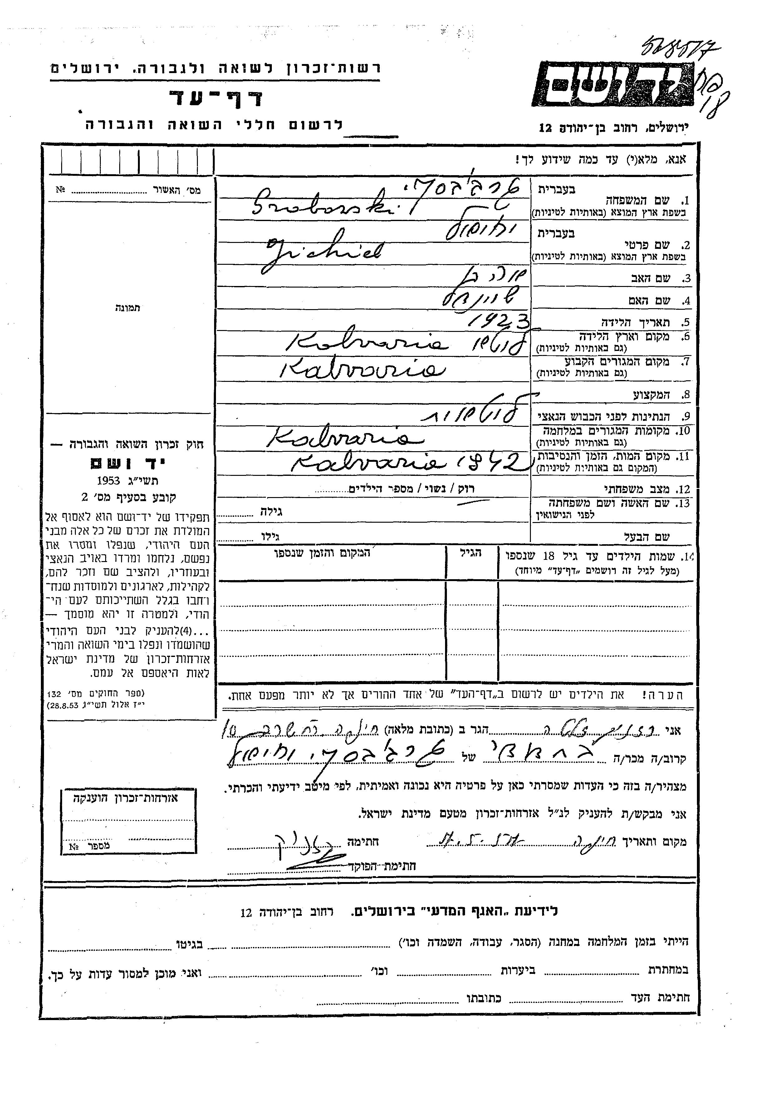 יד ושם - המפעל להנצחת השמות בדפי עד