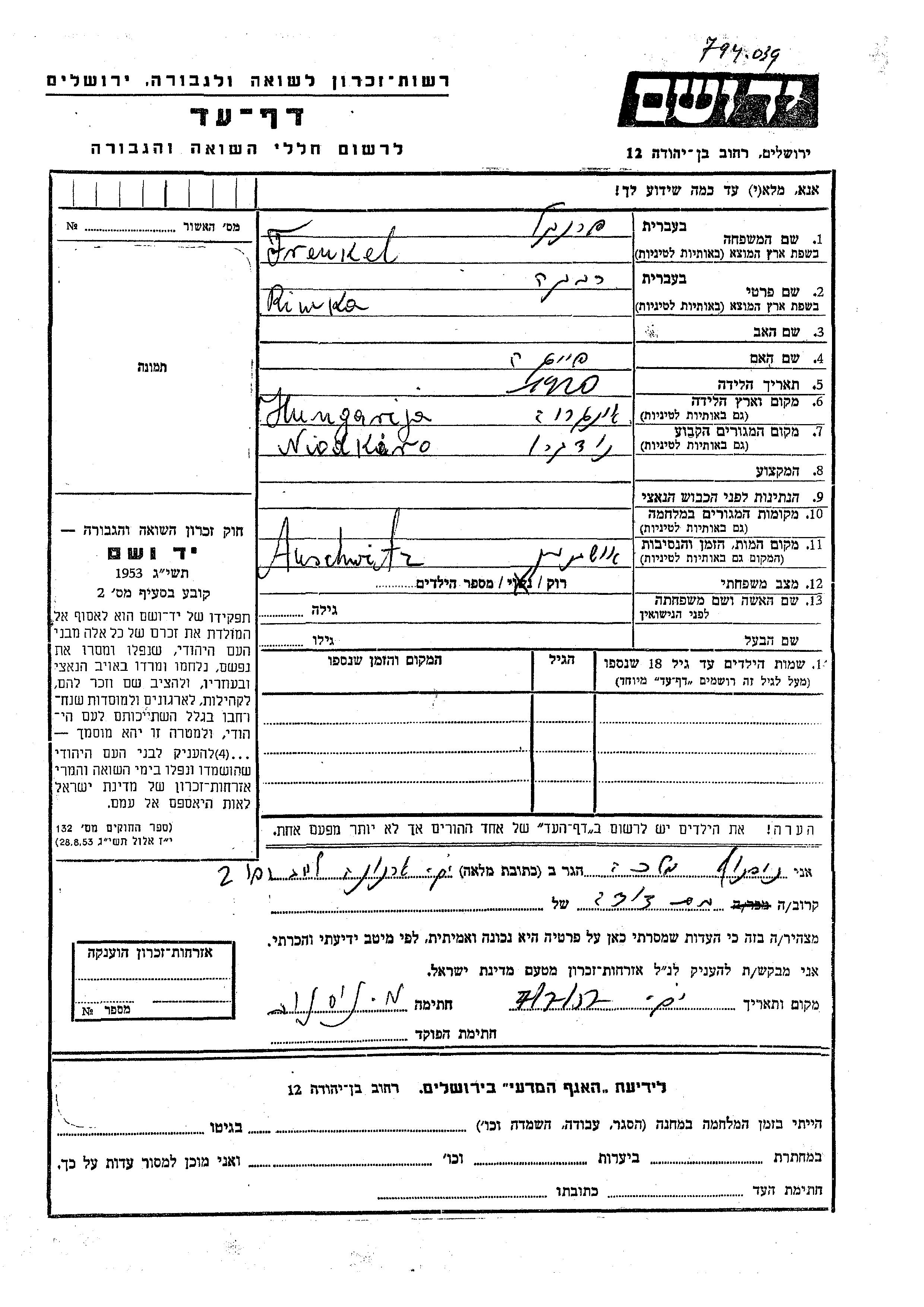 יד ושם - המפעל להנצחת השמות בדפי עד