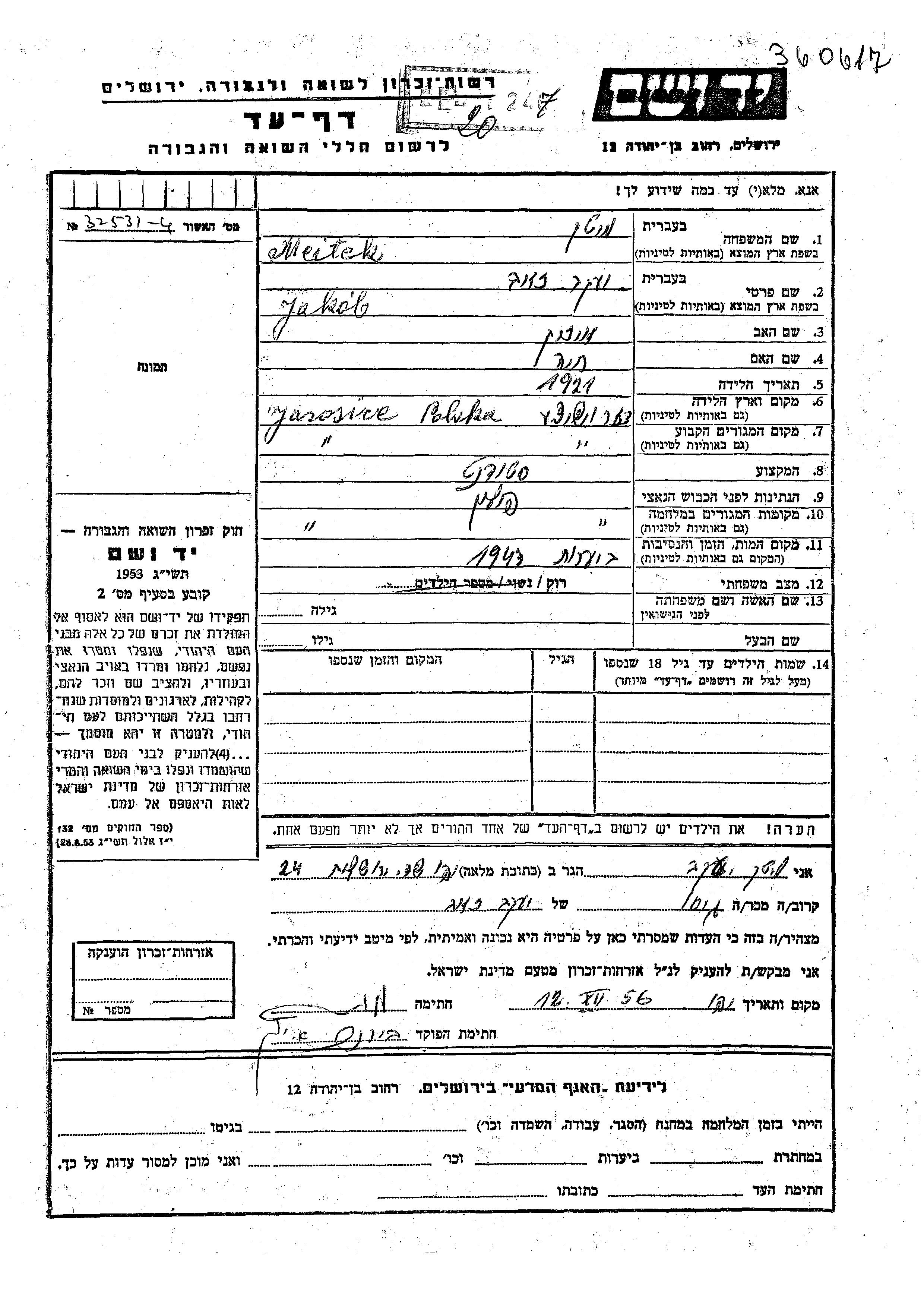 חיפוש שם מוסר דף העד. חיפוש לפי כל שם פרטי, כולל כינוי או שם חיבה