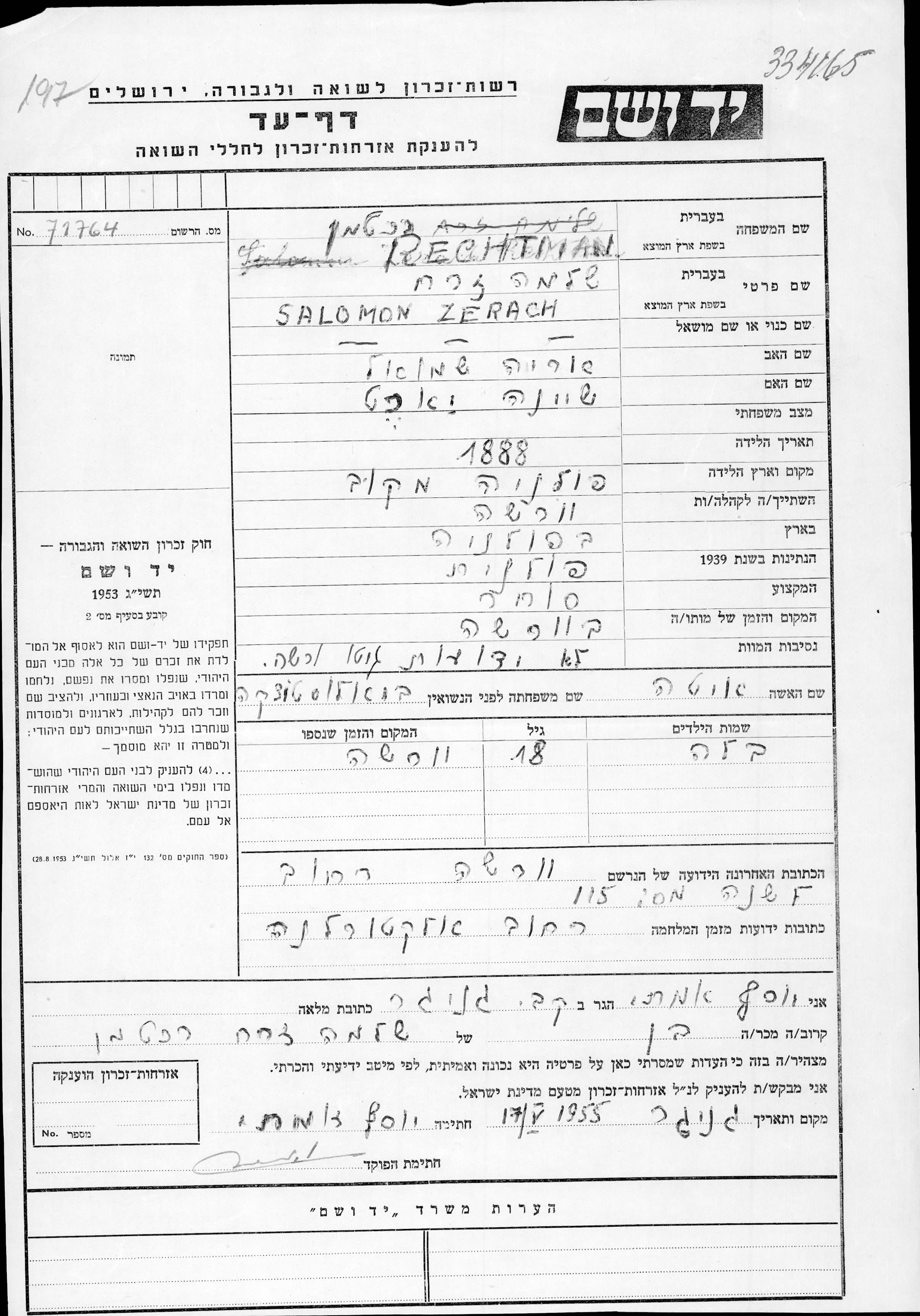 Rechtman Salomon Zerach 1888 Warszawa, פולין דף-עד
