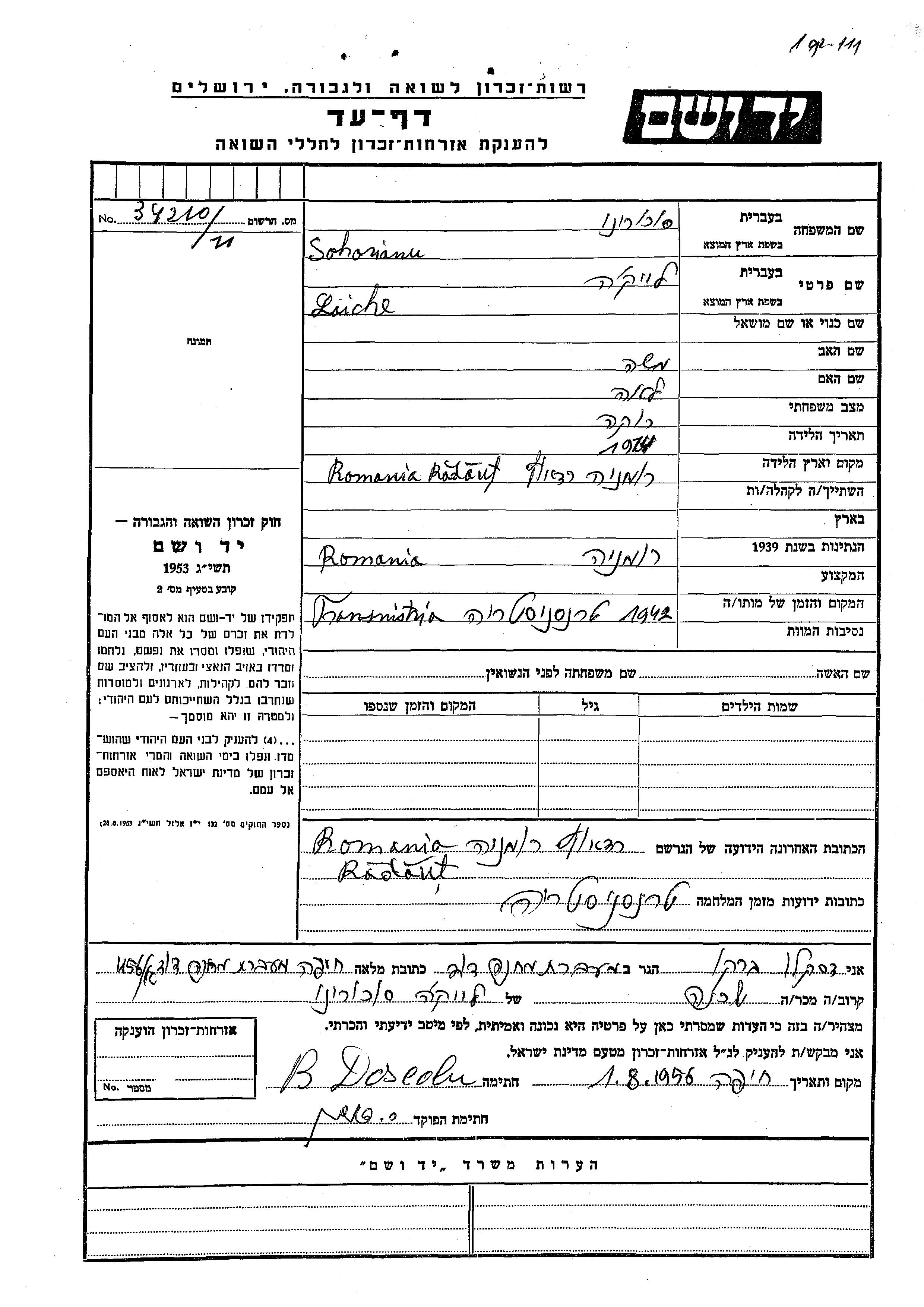 עיר/כפר, גטו/מחנה או אתר רצח או מחוז/אזור או מדינה. שם מקום ניתן לחפש רק בא-ב לטיני.
